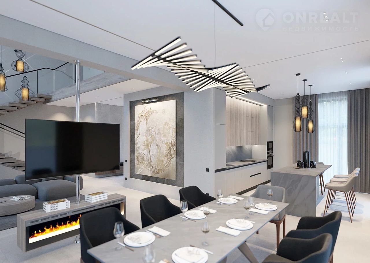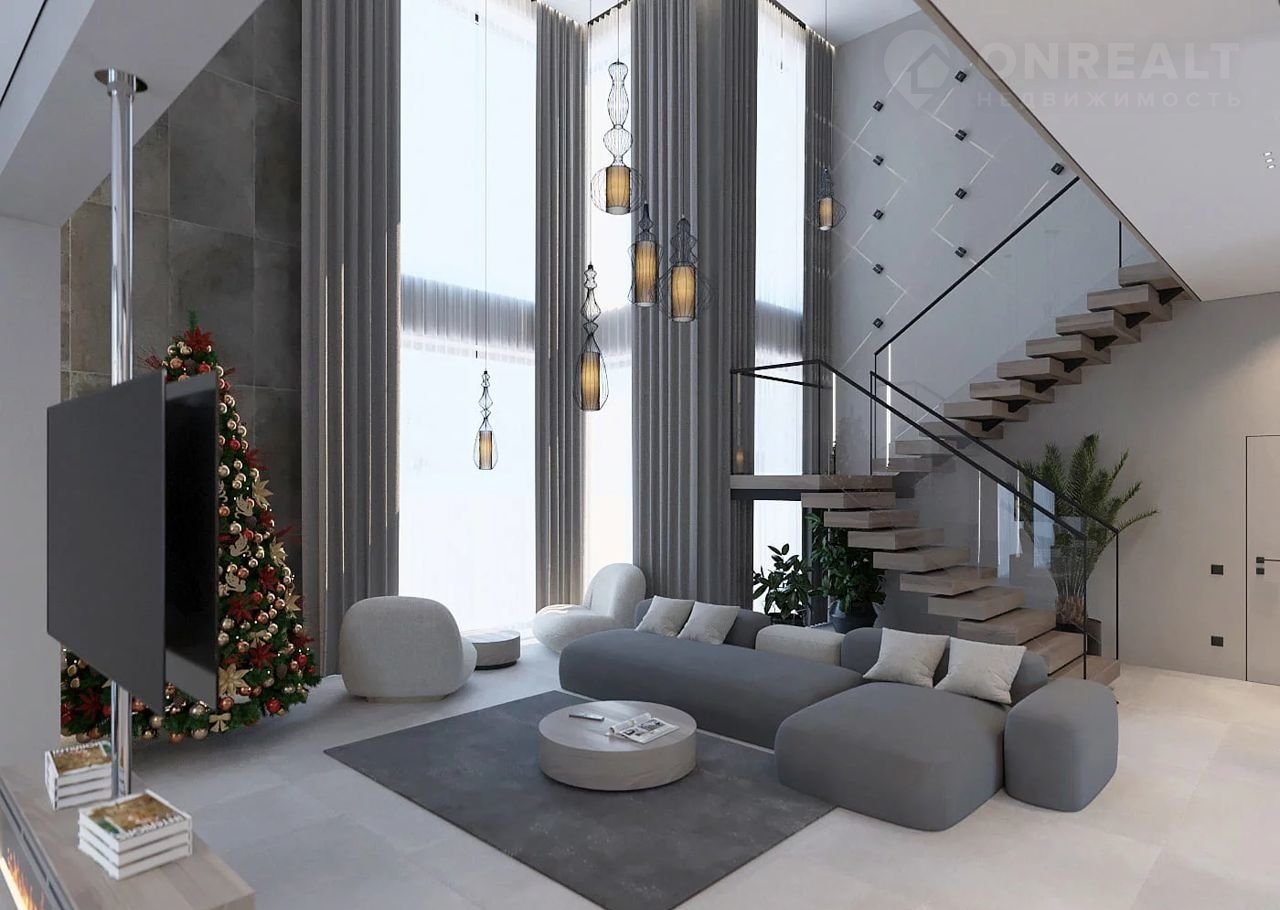 - Просторная кухня-гостиная с высотой потолка 6.5 м и угловым панорамным остеклением — 62.24 м²