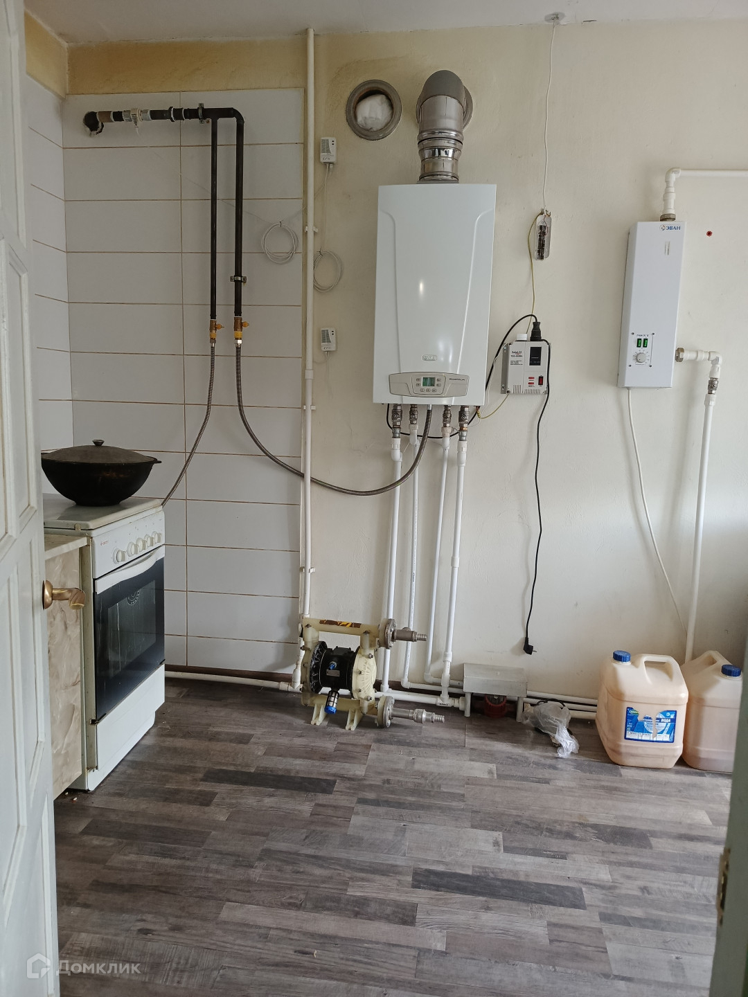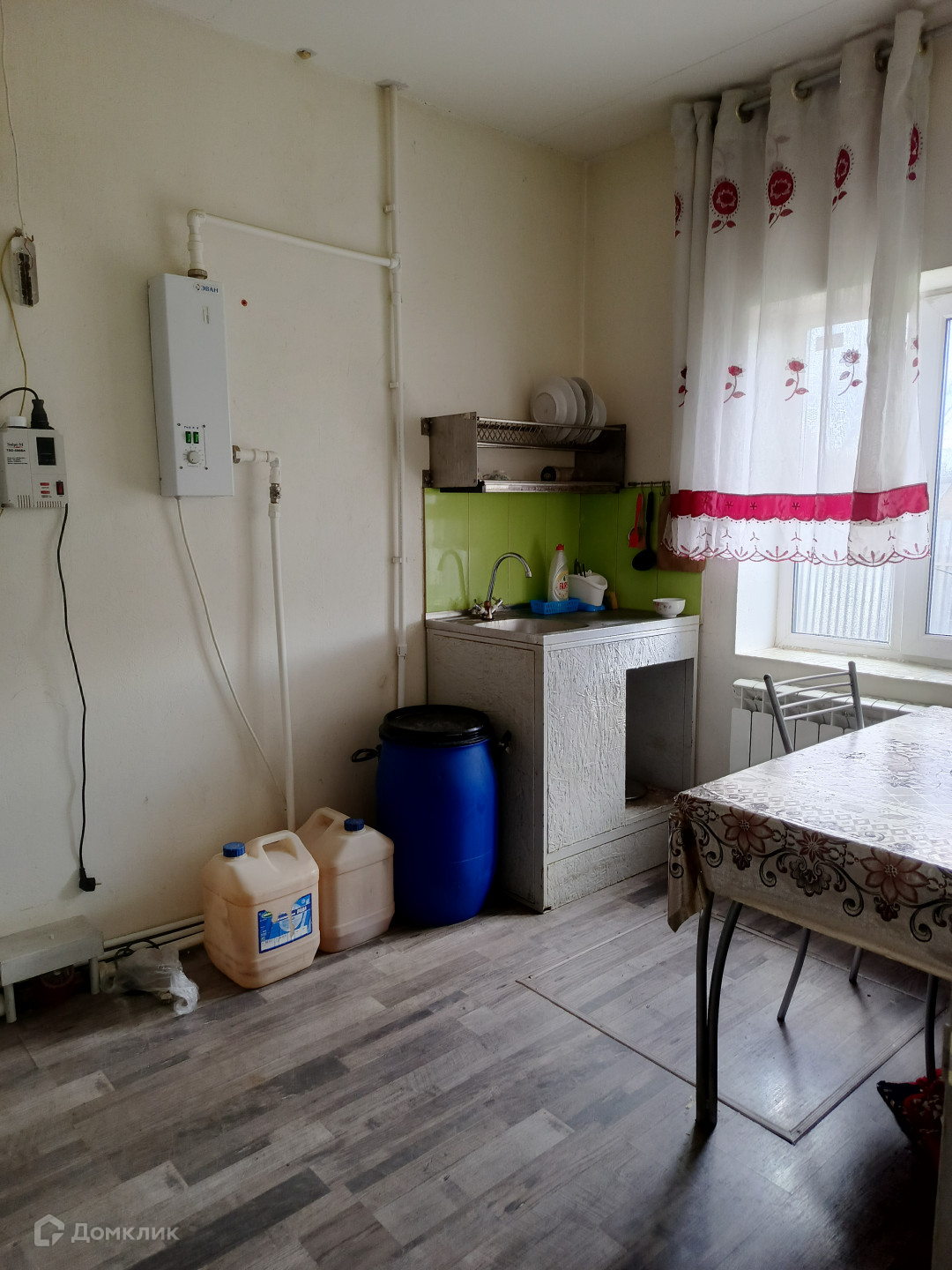 Дом построен из пеноблоков и утеплён, заведён газ, стоит двух контурный газовый котёл.