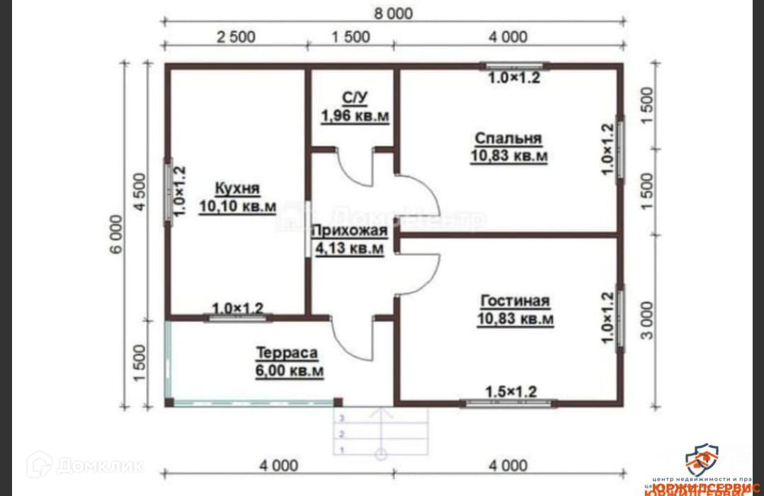 Общая площадь 41.6 м2