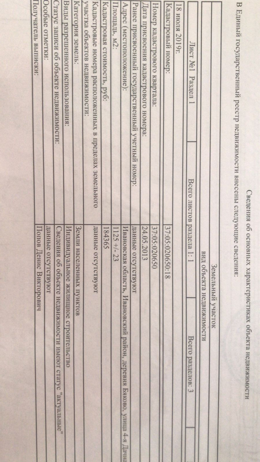 Площадь участка 1125 сот.