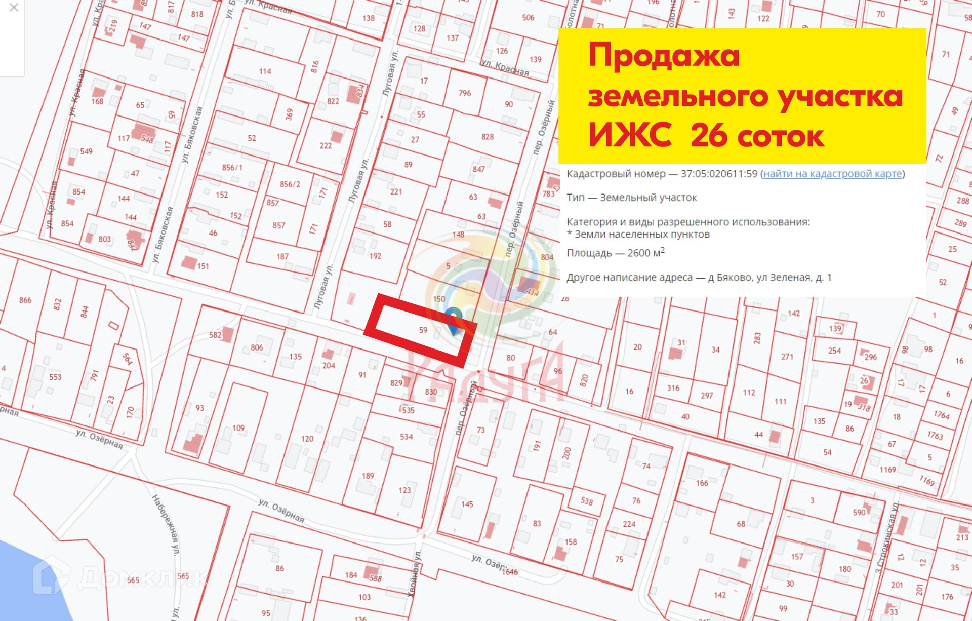 Кадастр. номер участка - 37:05:020611:59 (межеван)