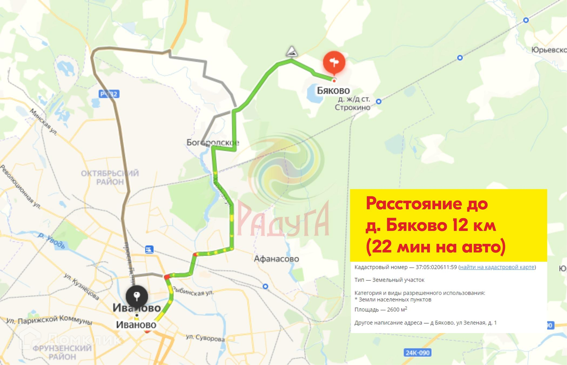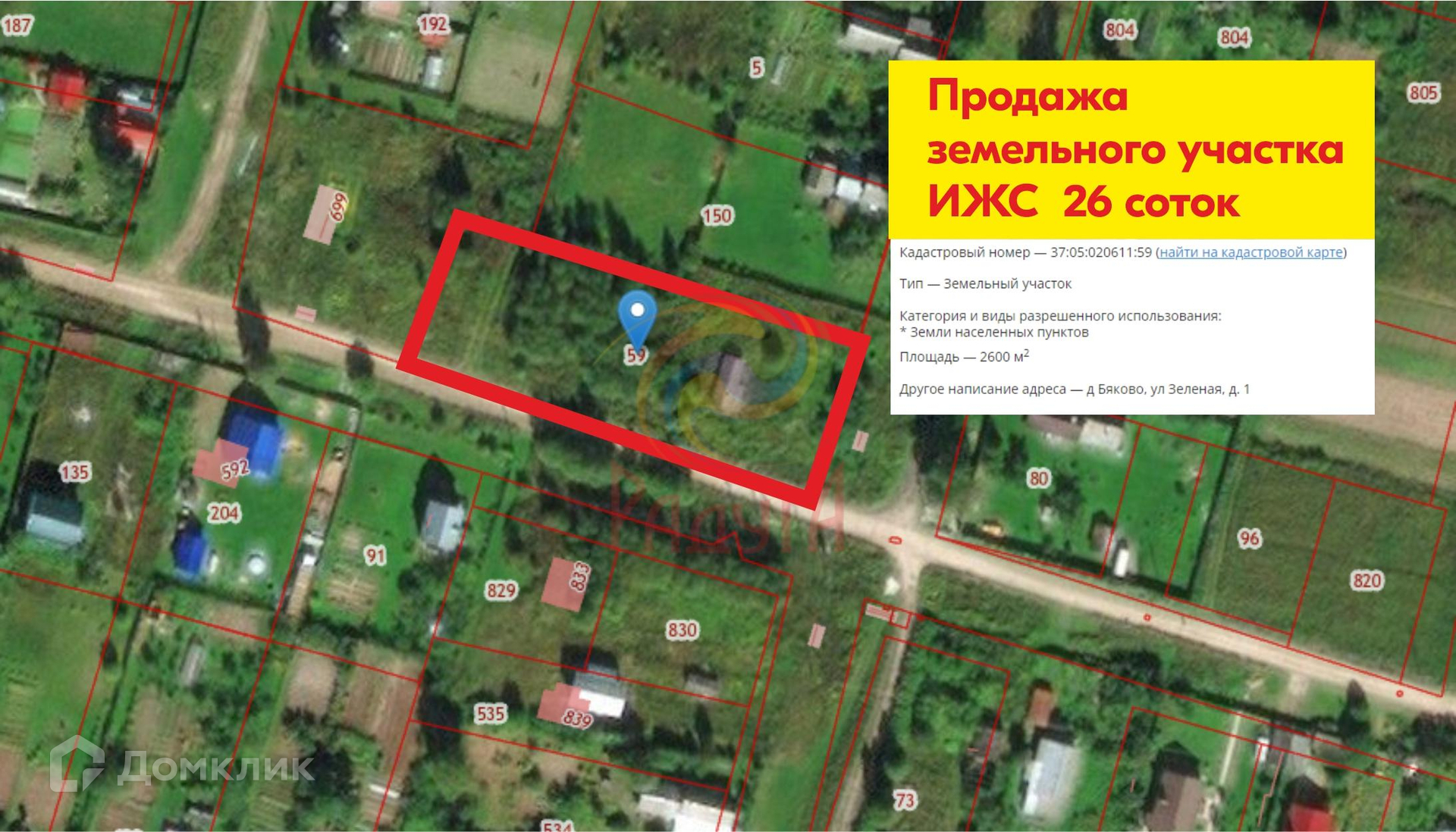 Адрес: Ивановская область, Богородское сельское поселение, деревня Бяково, Зелёная ул., 1 Общая площадь земельного участка 26 соток.