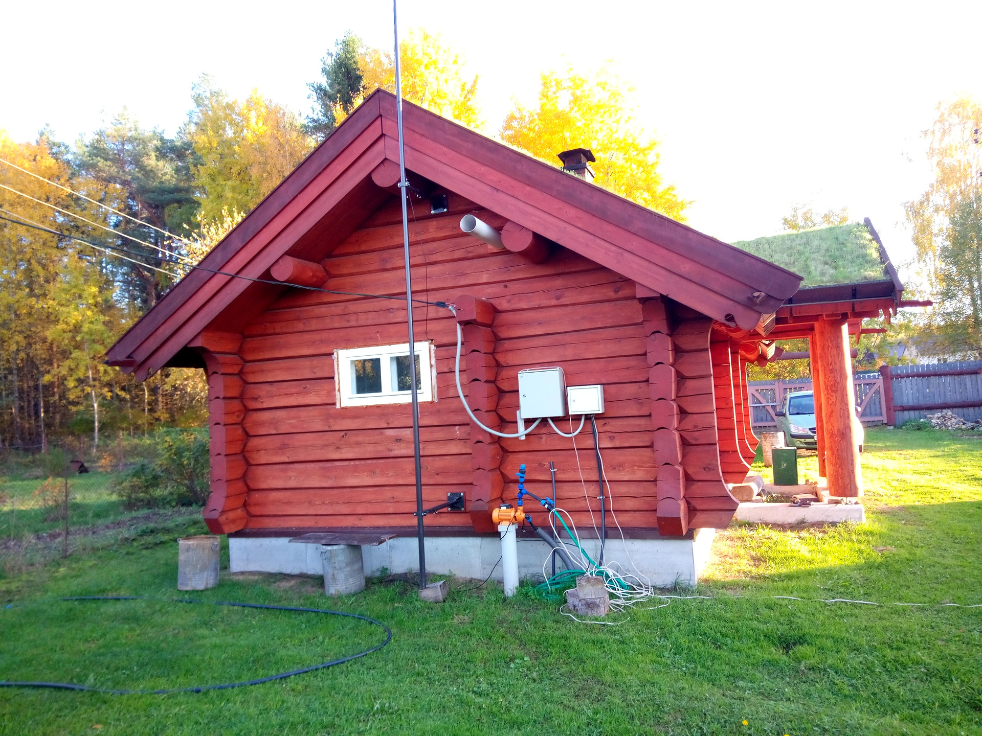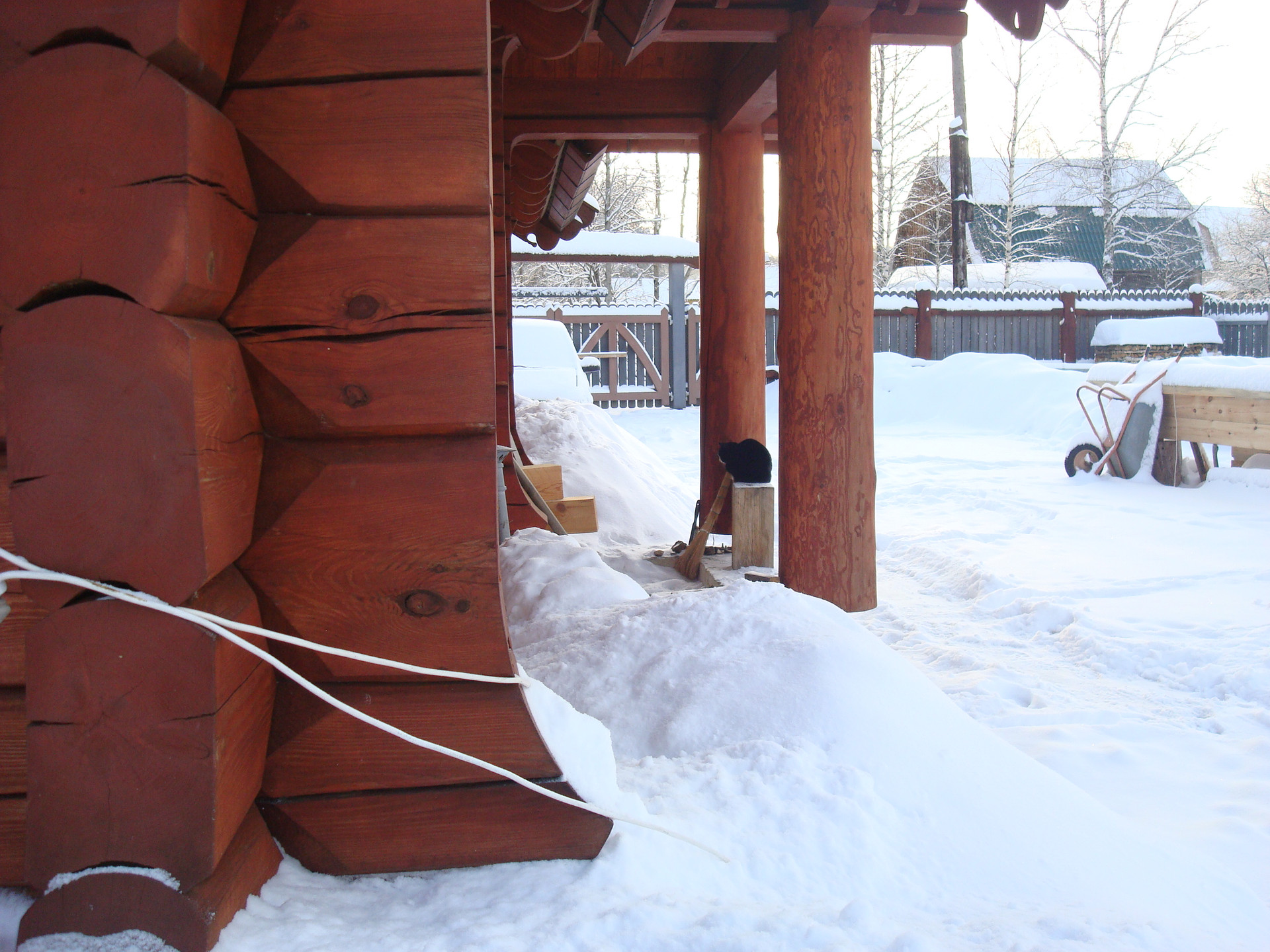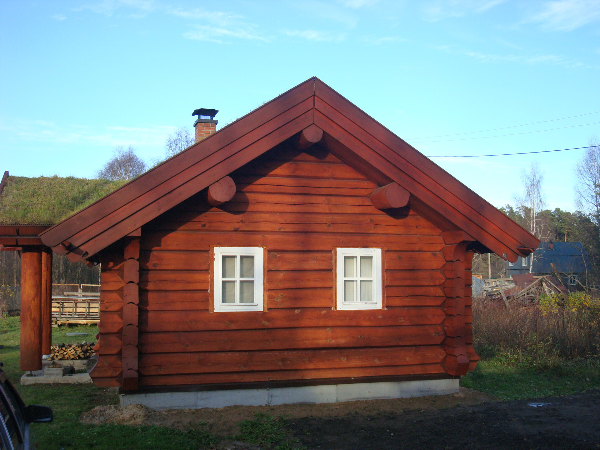 Дом стоит под крышей с 2015, а отапливается с 2017 года. Тяжелая крыша (15 м3 земли) благоприятно повлияла на усадку сруба. Все деформации уже произошли, и сруб представляет из себя то, чем он теперь всегда будет.