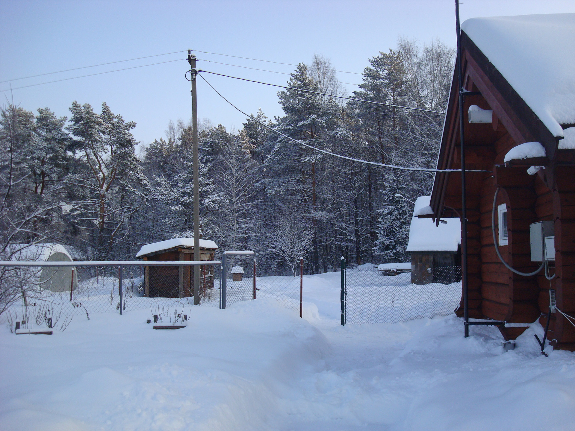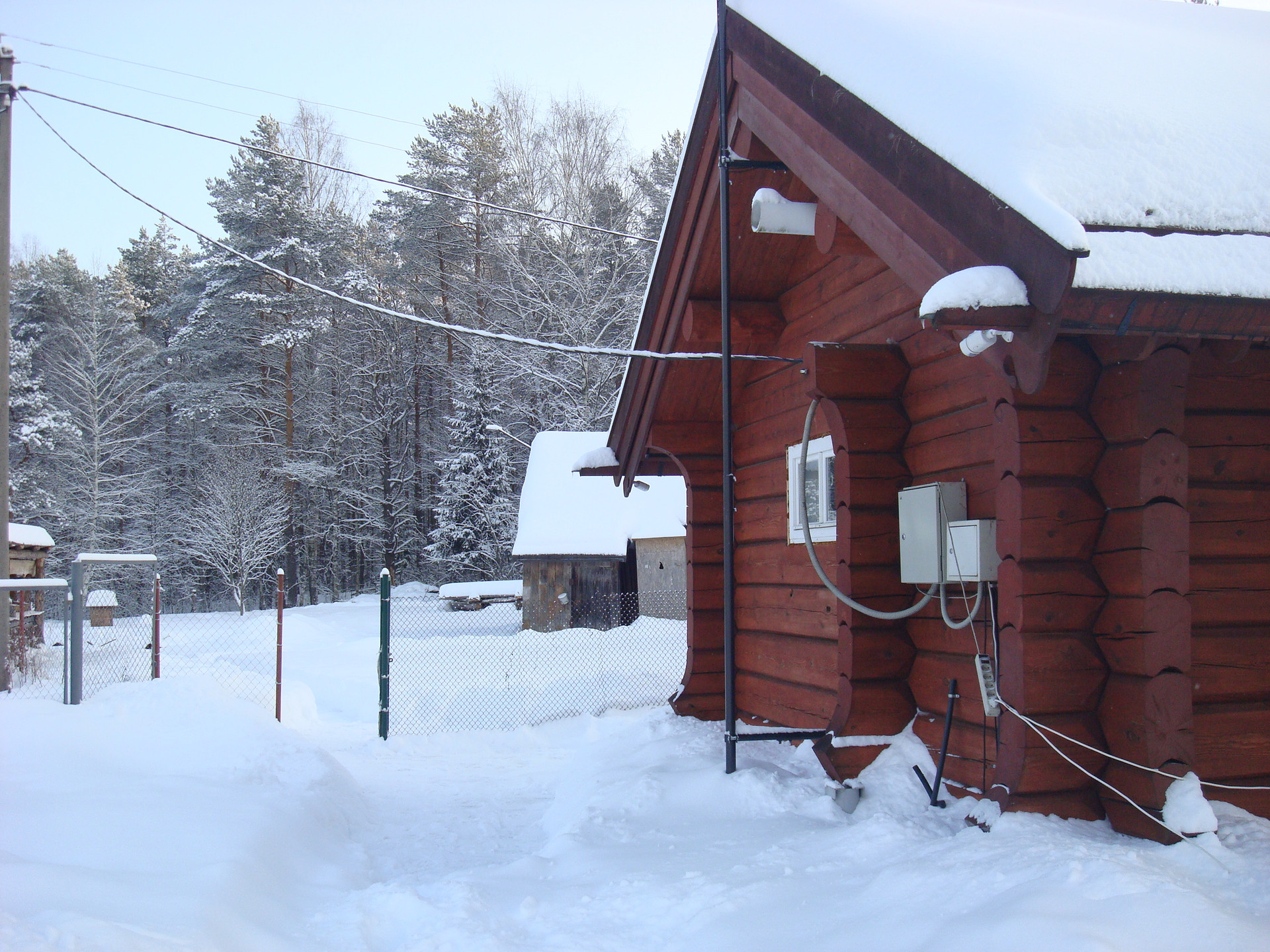 Водопровод из своего колодца, канализация - септик, электричество - 15 кВт, отопление печное.