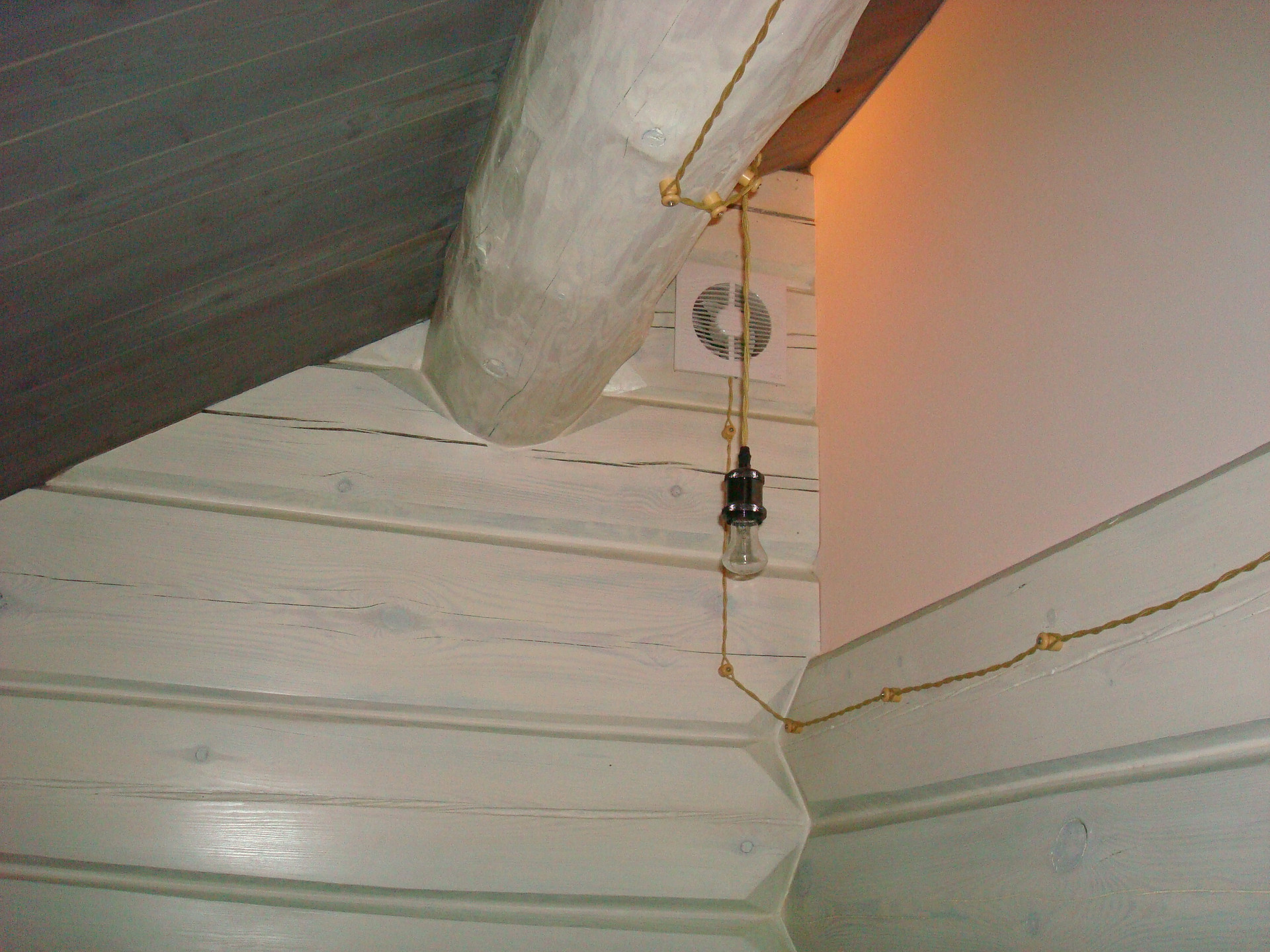 Потолок - мансардного типа, высотой 3,5 м в центре и 2,2 м у стены.