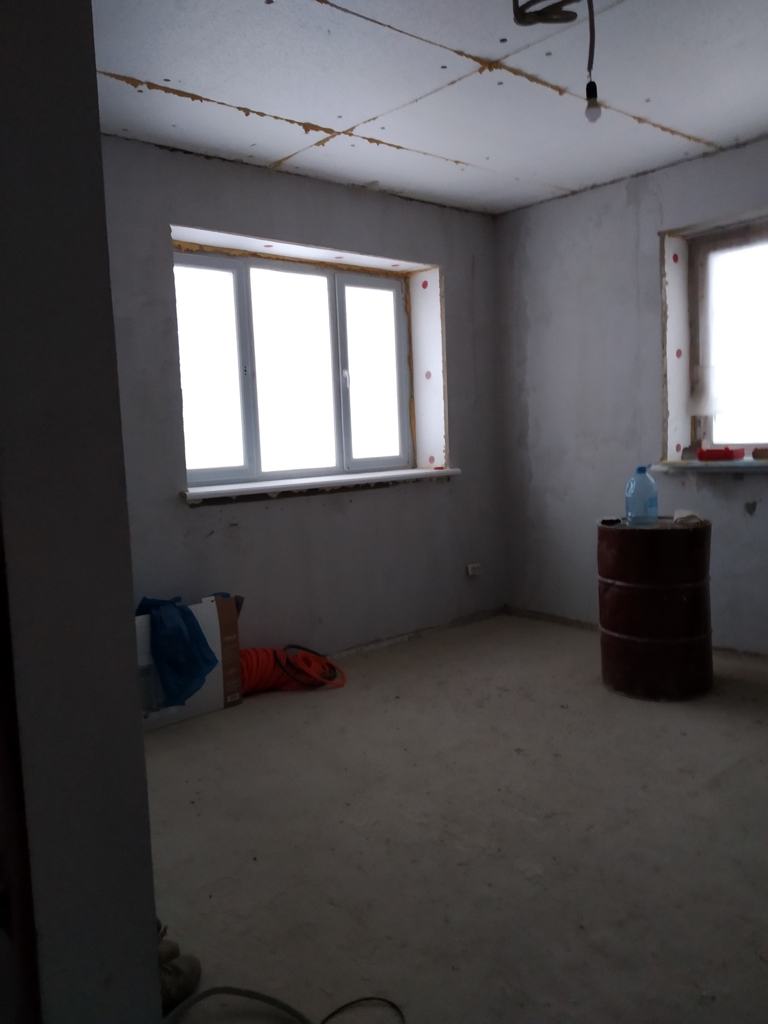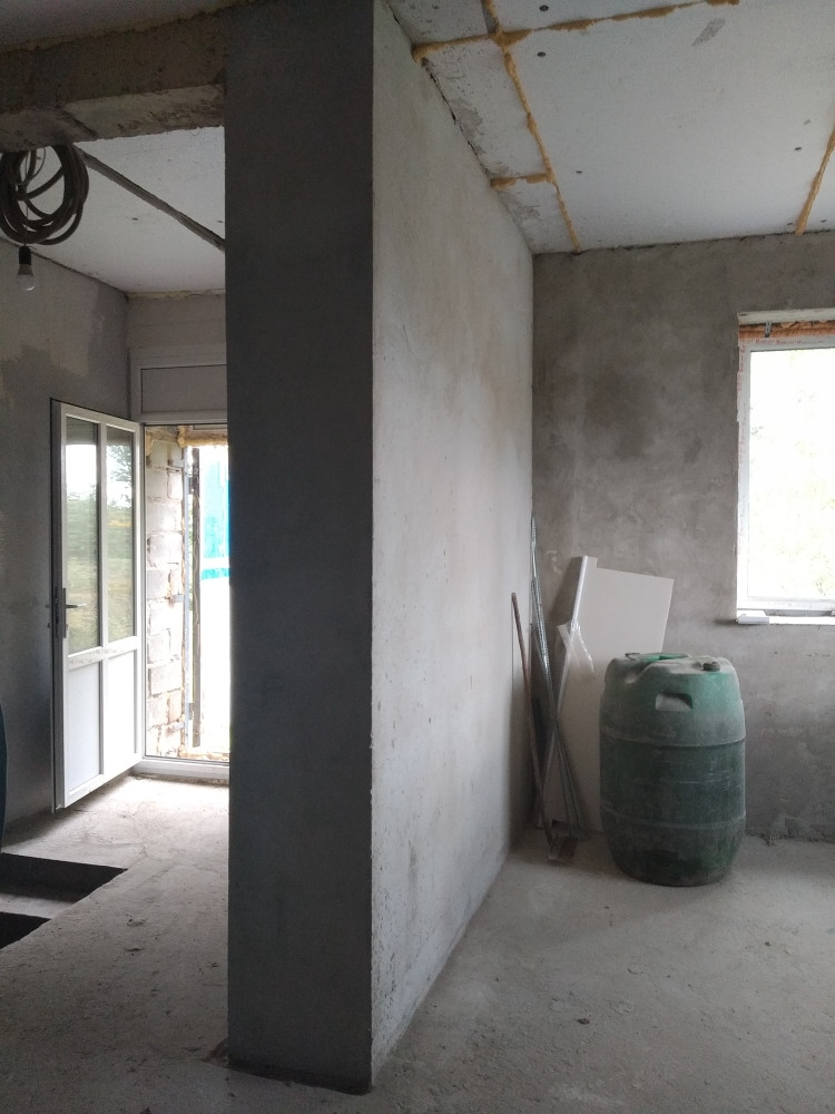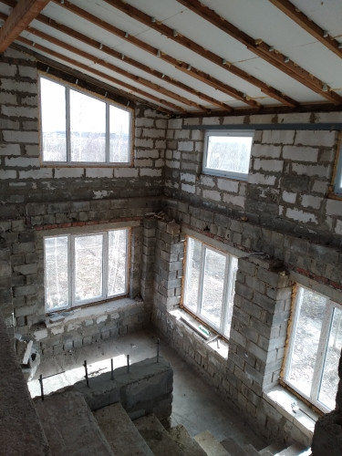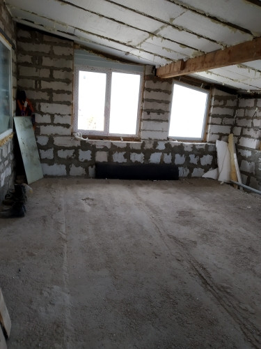 Новая асфальтированная дорога до дома. Крыша утеплена в один слой пенопластом, фундамент гидроизолирован. Ведутся работы по отделке строительства коттеджа, электрике, утепляются полы. Дом из керамзито - бетонных блоков.