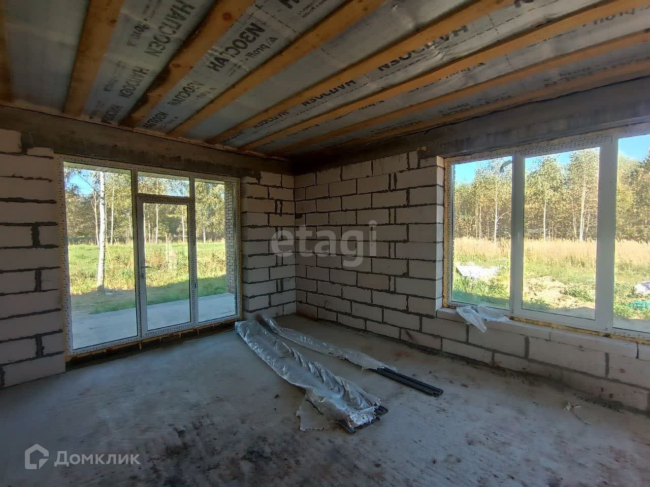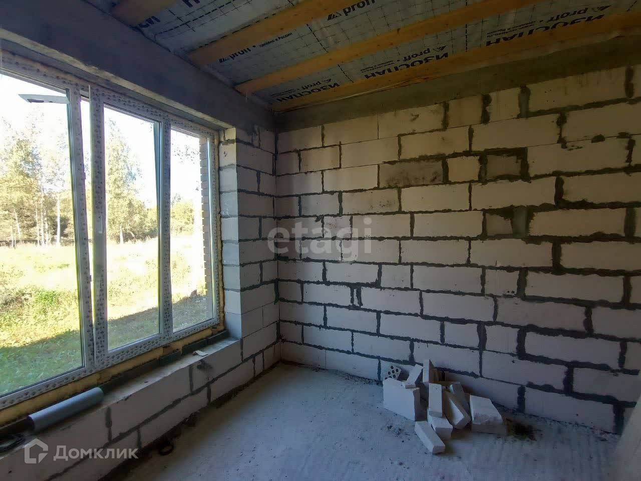 Выполнены работы: фундамент, возведены стены, смонтирована кровля, утеплено потолочное перекрытие, стяжка пола.