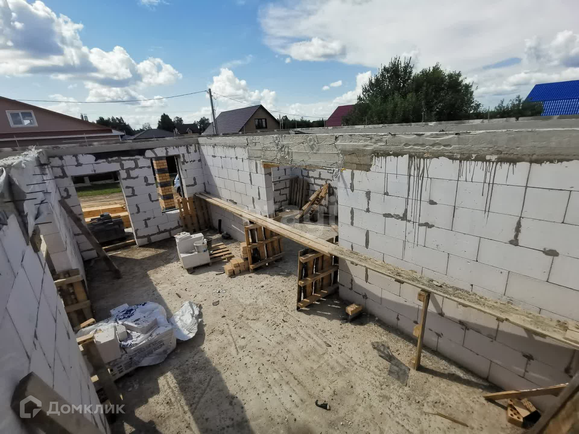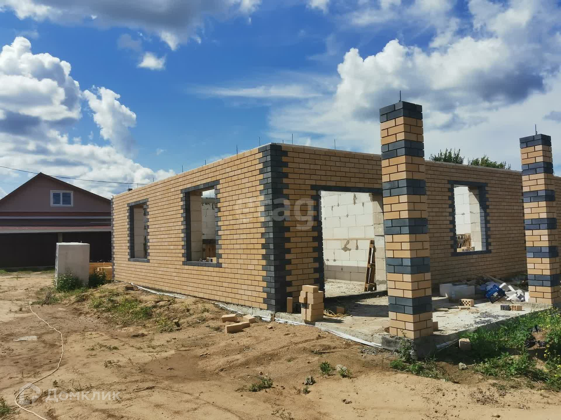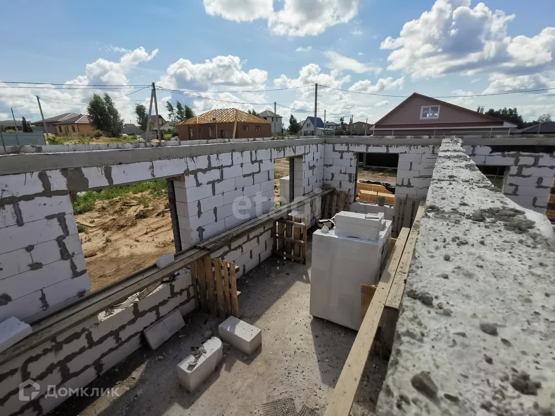 Дом на ленточном армированном фундаменте глубиной 1,7 м + залита плита, материал стен: газоблок производство Могилевский КСИ + облицовочный кирпич, крыша – металлочерепица, утепление крыши 15 см. В настоящий момент дом на стадии строительства - фотографии обновляются (фото предыдущих стадий не удаляю). На момент передачи дома новому собственнику в доме будут установлены межкомнатные перегородки, осуществлена разводка теплого пола, также оставляются выводы под батареи, оштукатурены стены, установлены двухкамерные стеклопакеты с темной ламинацией по внешней стороне в тон крыши, установлен газовый котел. Коммуникации: газ, электричество, водоснабжение центральное, канализация – септик 3 кольца.