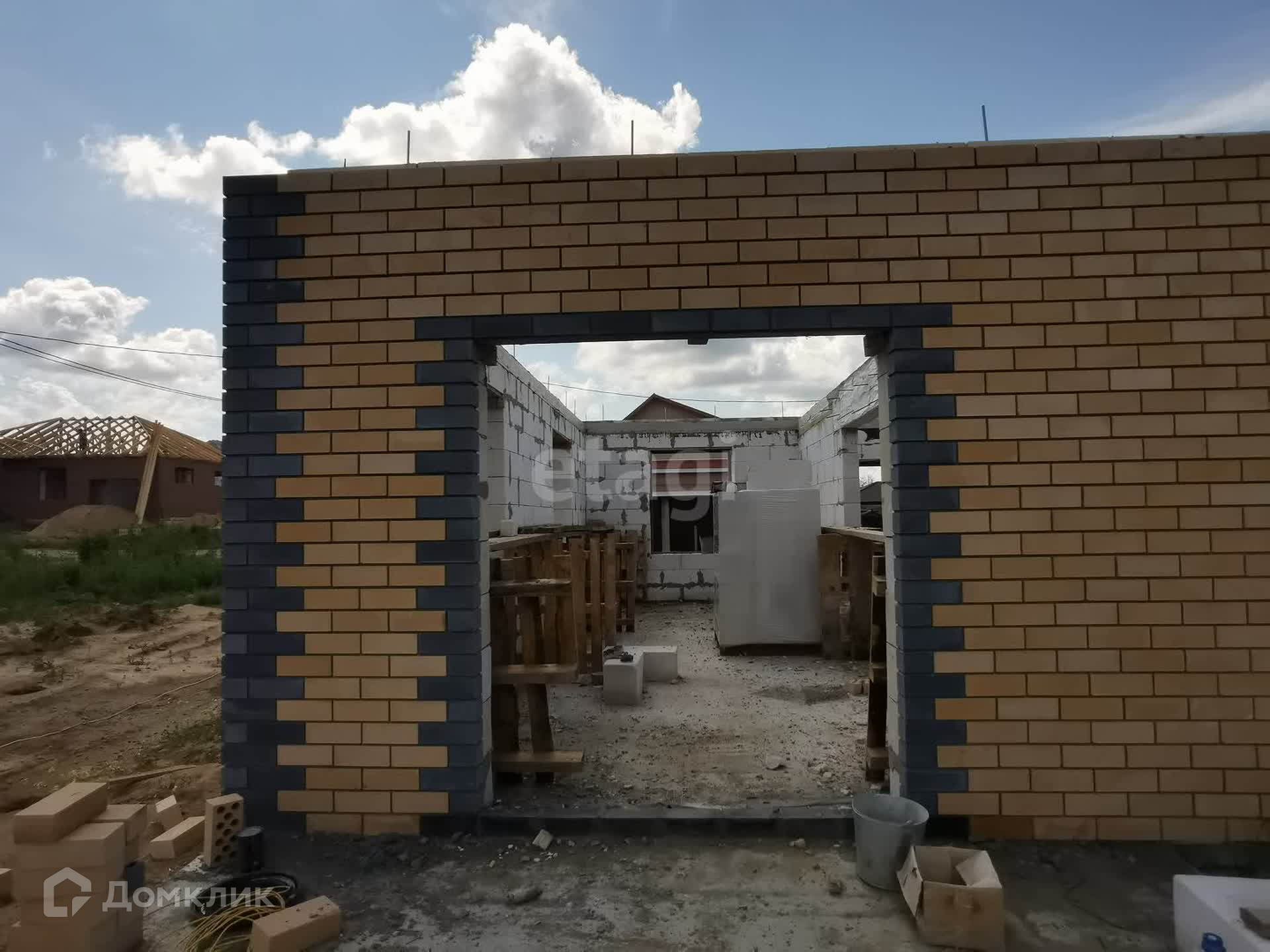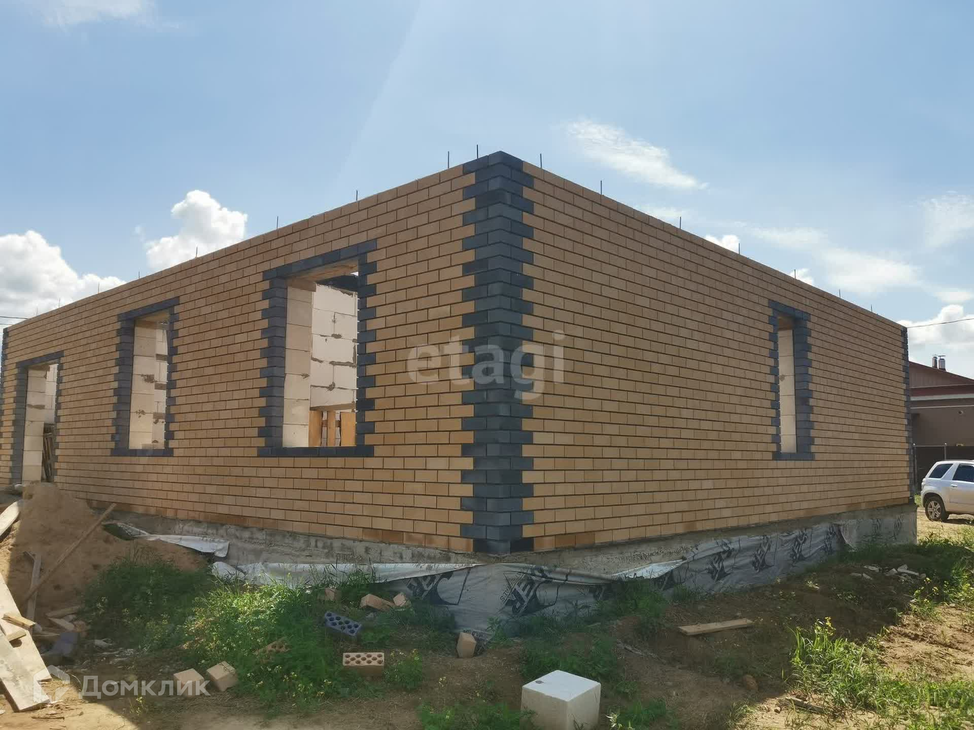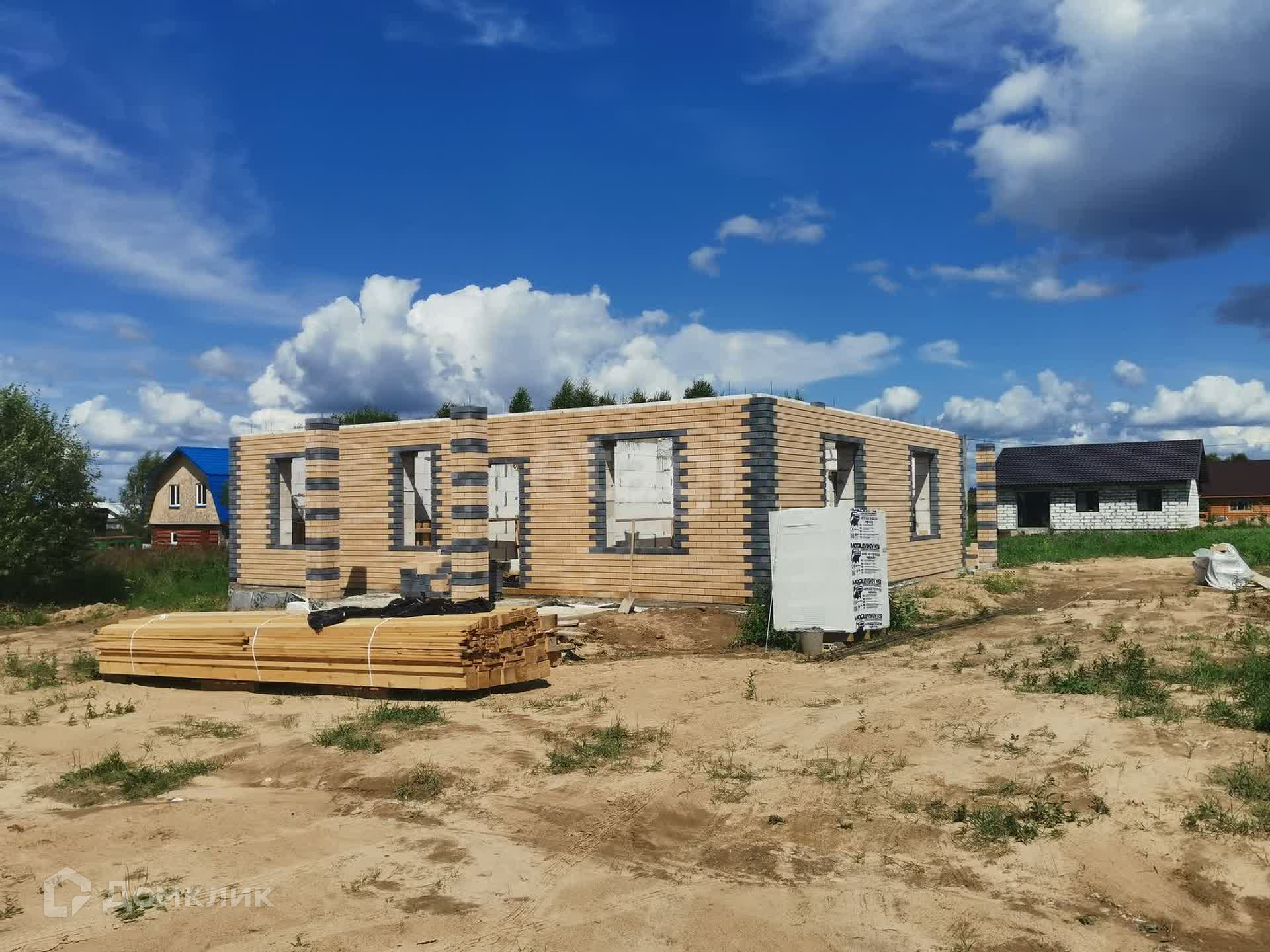 Дом на ленточном армированном фундаменте глубиной 1,7 м + залита плита, материал стен: газоблок производство Могилевский КСИ + облицовочный кирпич, крыша – металлочерепица, утепление крыши 15 см. В настоящий момент дом на стадии строительства - фотографии обновляются (фото предыдущих стадий не удаляю). На момент передачи дома новому собственнику в доме будут установлены межкомнатные перегородки, осуществлена разводка теплого пола, также оставляются выводы под батареи, оштукатурены стены, установлены двухкамерные стеклопакеты с темной ламинацией по внешней стороне в тон крыши, установлен газовый котел. Коммуникации: газ, электричество, водоснабжение центральное, канализация – септик 3 кольца.