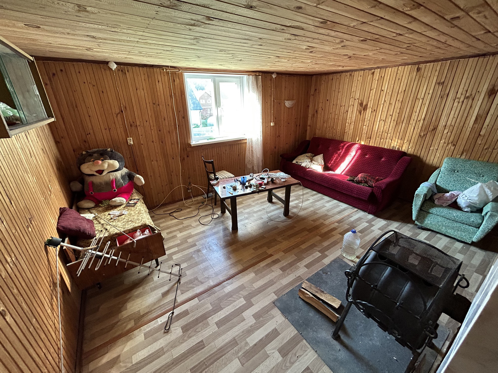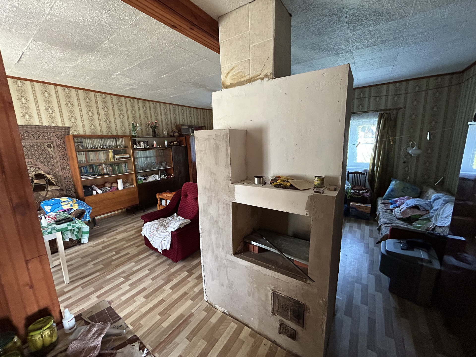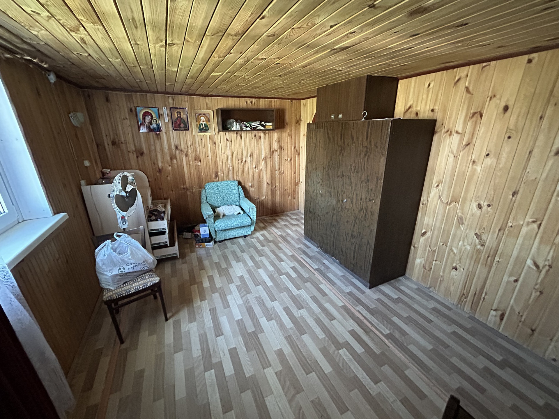 Бревенчатый дом размером 7,5х9,2 оборудован добротной печью, на втором этаже установлена печь-бурельян. Планировка: прихожая, кухня-столовая, помещение 1 этажа зонировано на 2 комнаты, второй этаж – 2 спальни.Пространство дома используется максимально, есть еще возможность оборудовать небольшую комнату с окном. Дом очень большой, потолки 1-го этажа – 3 метра! Во всем доме пластиковые окна.