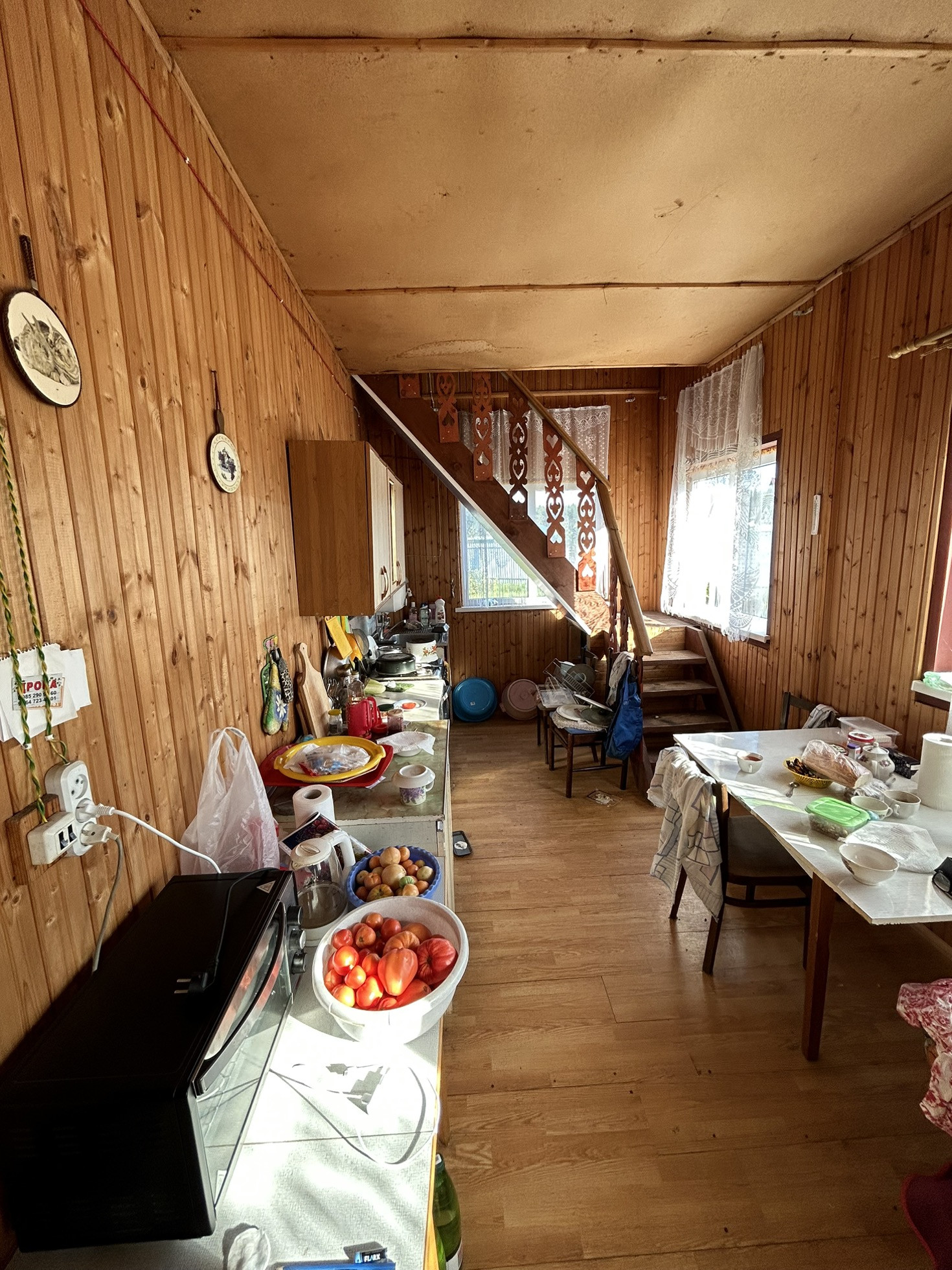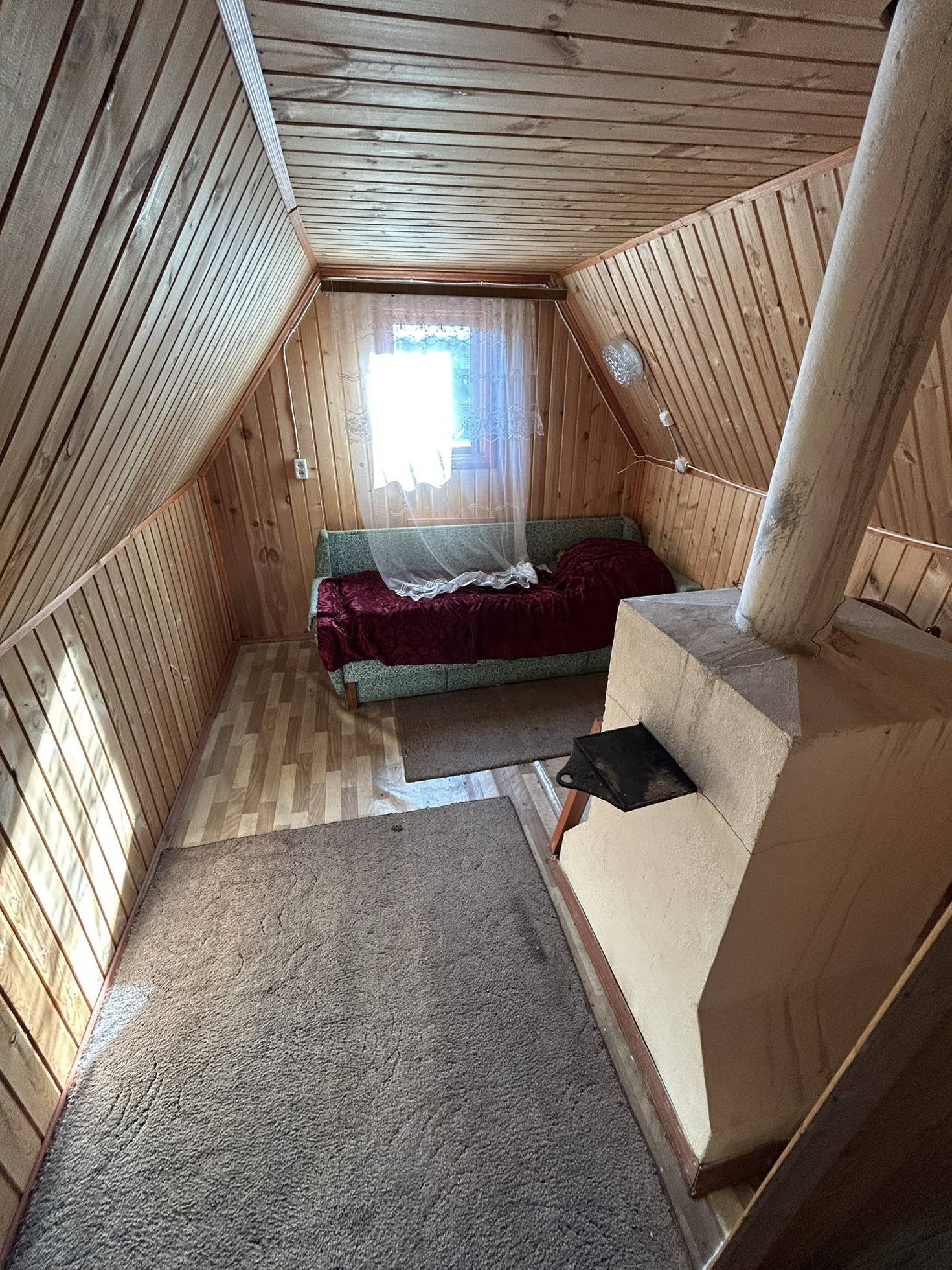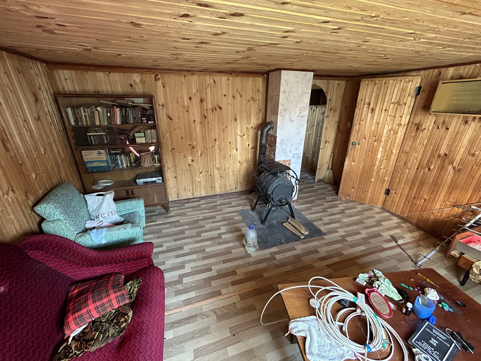 Бревенчатый дом размером 7,5х9,2 оборудован добротной печью, на втором этаже установлена печь-бурельян. Планировка: прихожая, кухня-столовая, помещение 1 этажа зонировано на 2 комнаты, второй этаж – 2 спальни.Пространство дома используется максимально, есть еще возможность оборудовать небольшую комнату с окном. Дом очень большой, потолки 1-го этажа – 3 метра! Во всем доме пластиковые окна.
