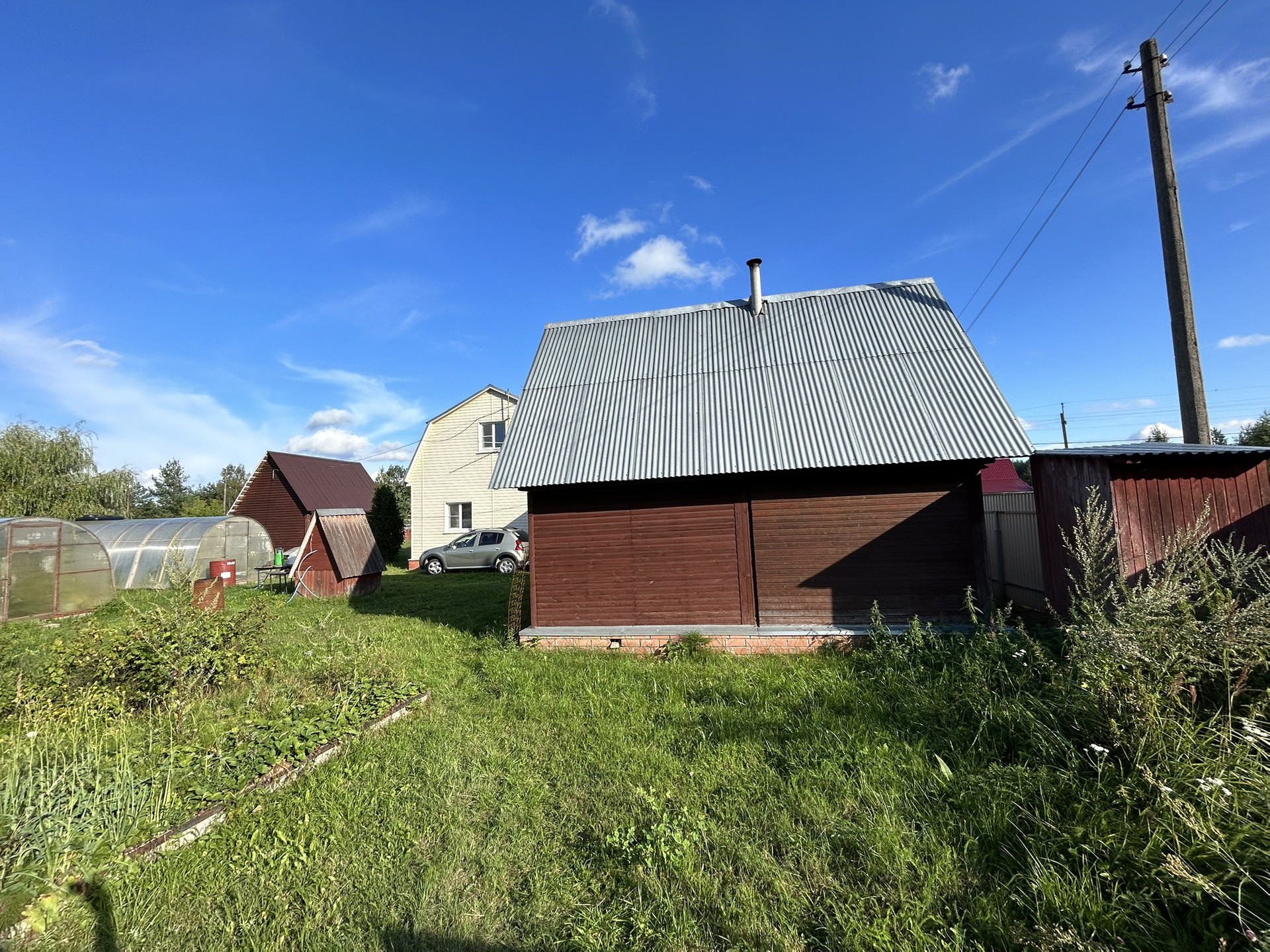На участке помимо 2-х этажной рубленой бани с парной из липы и душевой с дровяным котлом есть хоз.постройки - мастерская-хозблок, туалет, колодец.