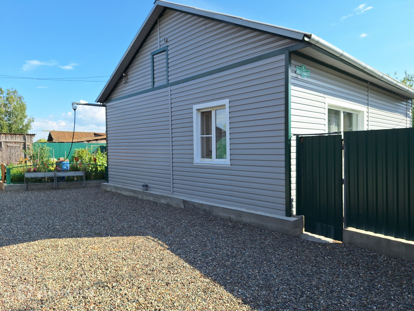 Дом расположен на земельном участке – 5,4соток. Усадьба ухожена, на ней расположены баня, летняя кухня, стайки для домашних животных. Территория выложена гравием, благодаря этому во дворе всегда чисто.