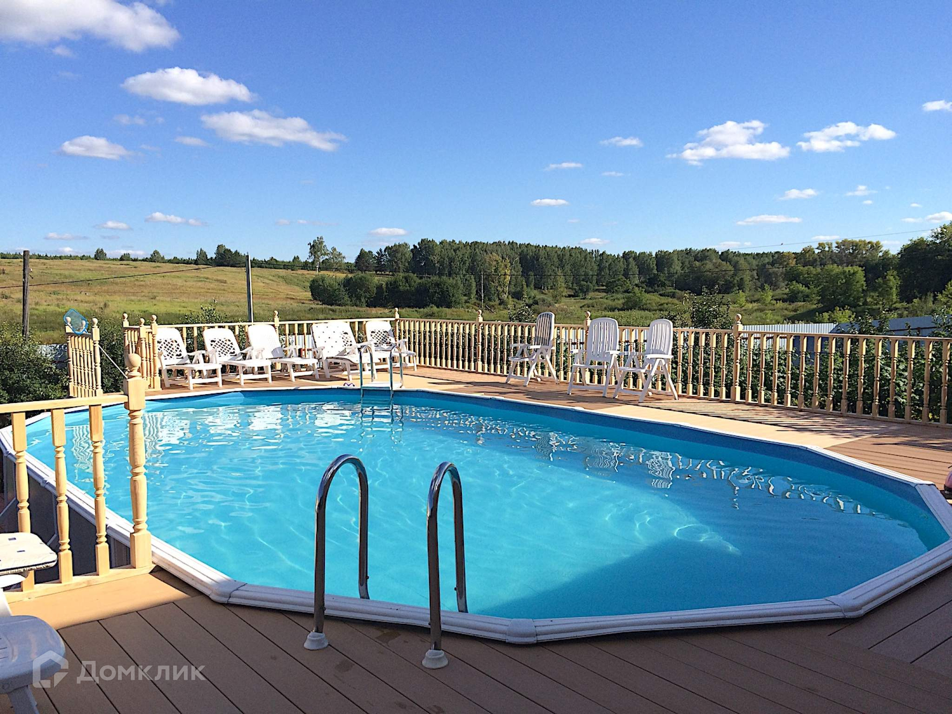 Бассейн 64 куб.м с «палубой» для шезлонгов.