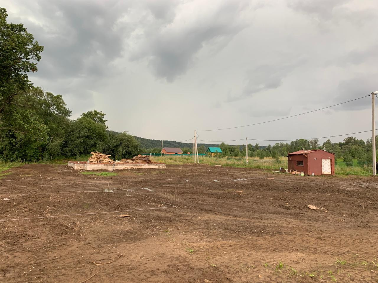 Участок оформлен в собственность. Участок выравнивали и отсыпали. На участке есть фундамент- свайно- ленточный, размером 11*11, под 2-этажный каменный дом, канализация переливного типа (колодцы 6м и 5м), выполнена разводка под водопровод и канализацию.