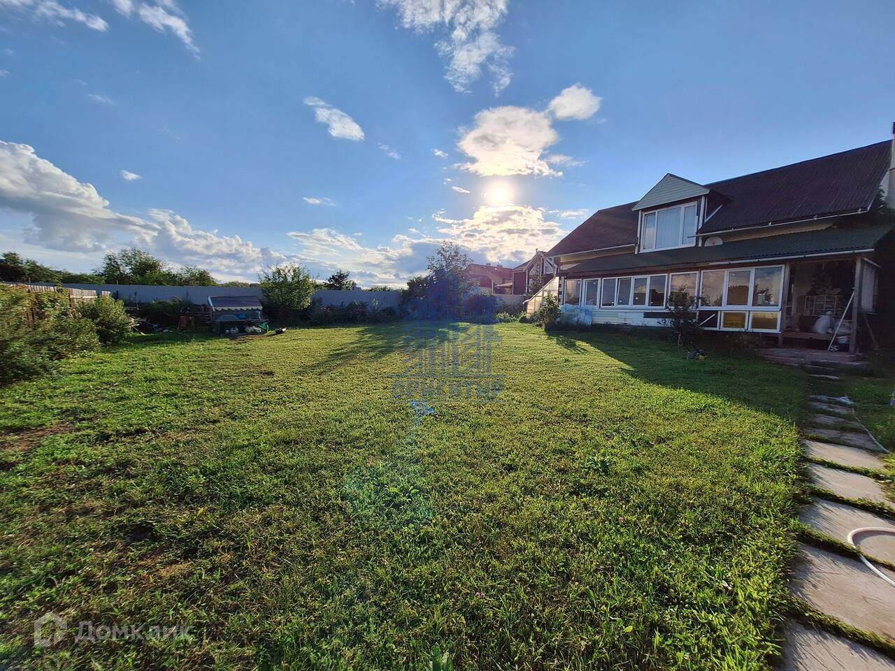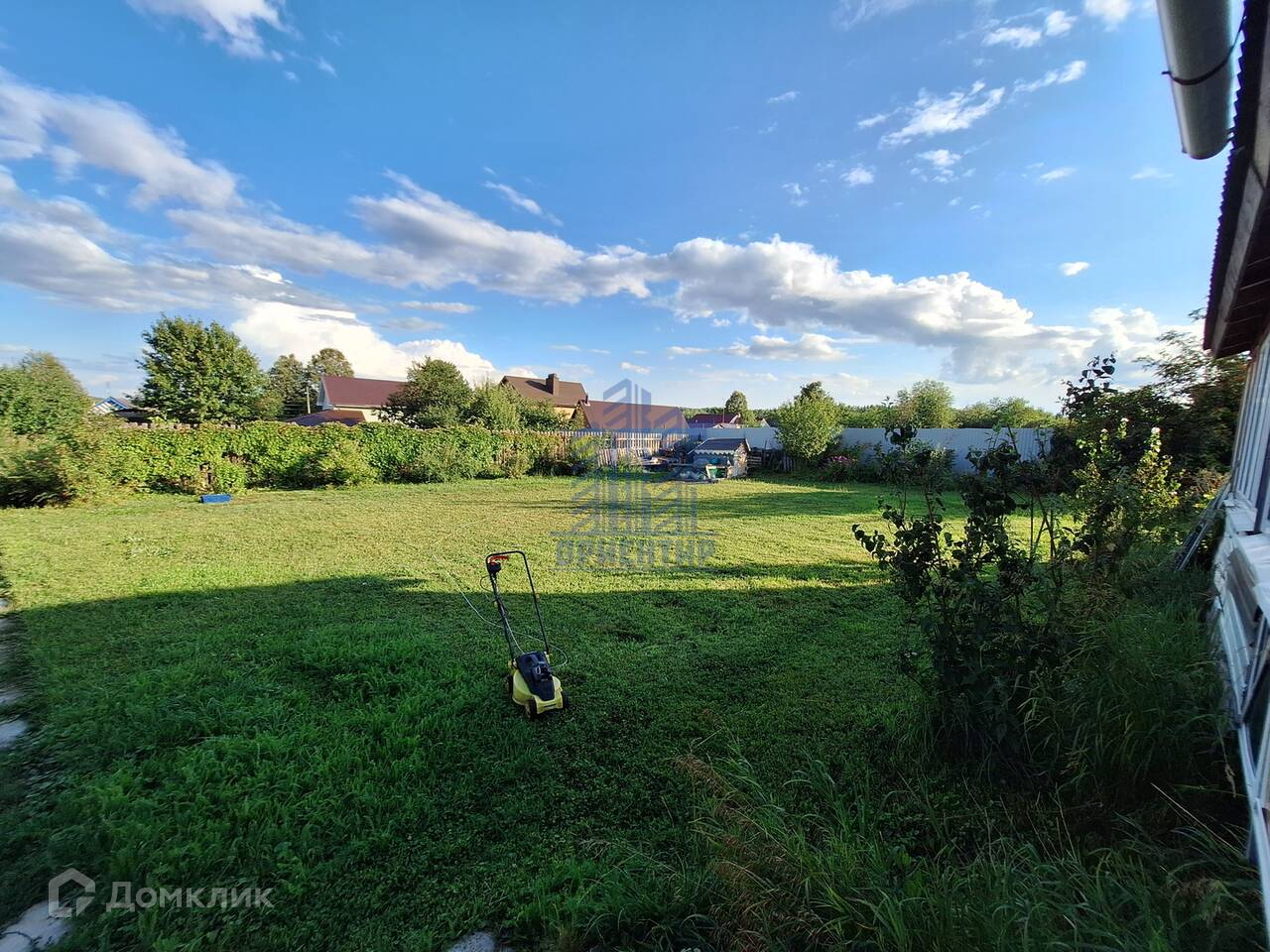 Перед домом много места,где можно построить баню, установить бассейн,  теплицу, сделать какое либо ландшафтное решение,уже на Ваш вкус. Сейчас же здесь ровный участок  с коротко постриженым  газоном.