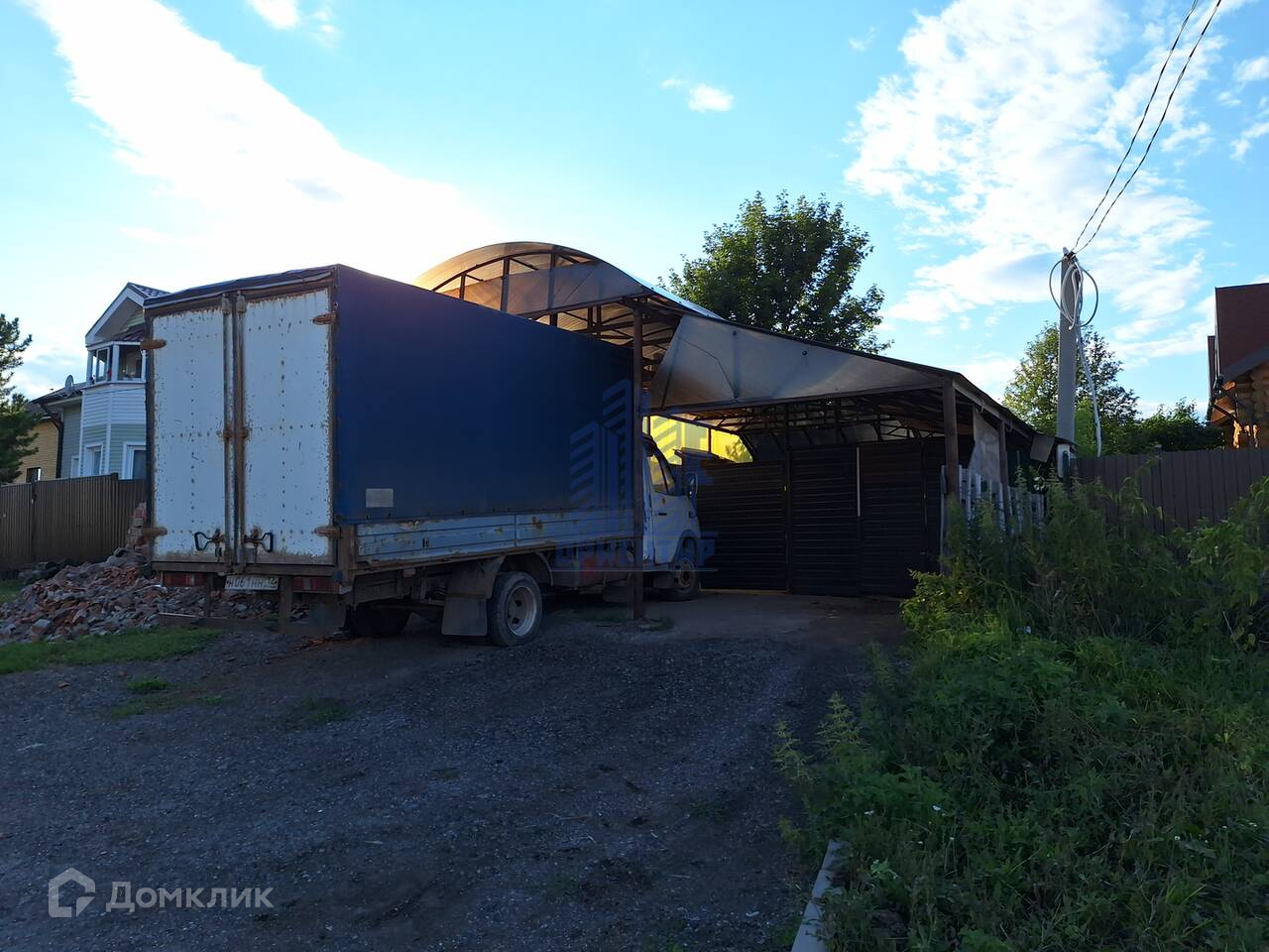 Участок 13,4 сотки.  При входе на территорию участка расположена крытая парковка на 2 машиноместа , куда может заехать одна легковая и одна грузовая машина. Дом расположен в глубине участка, удален от шума и пыли проезжей части.