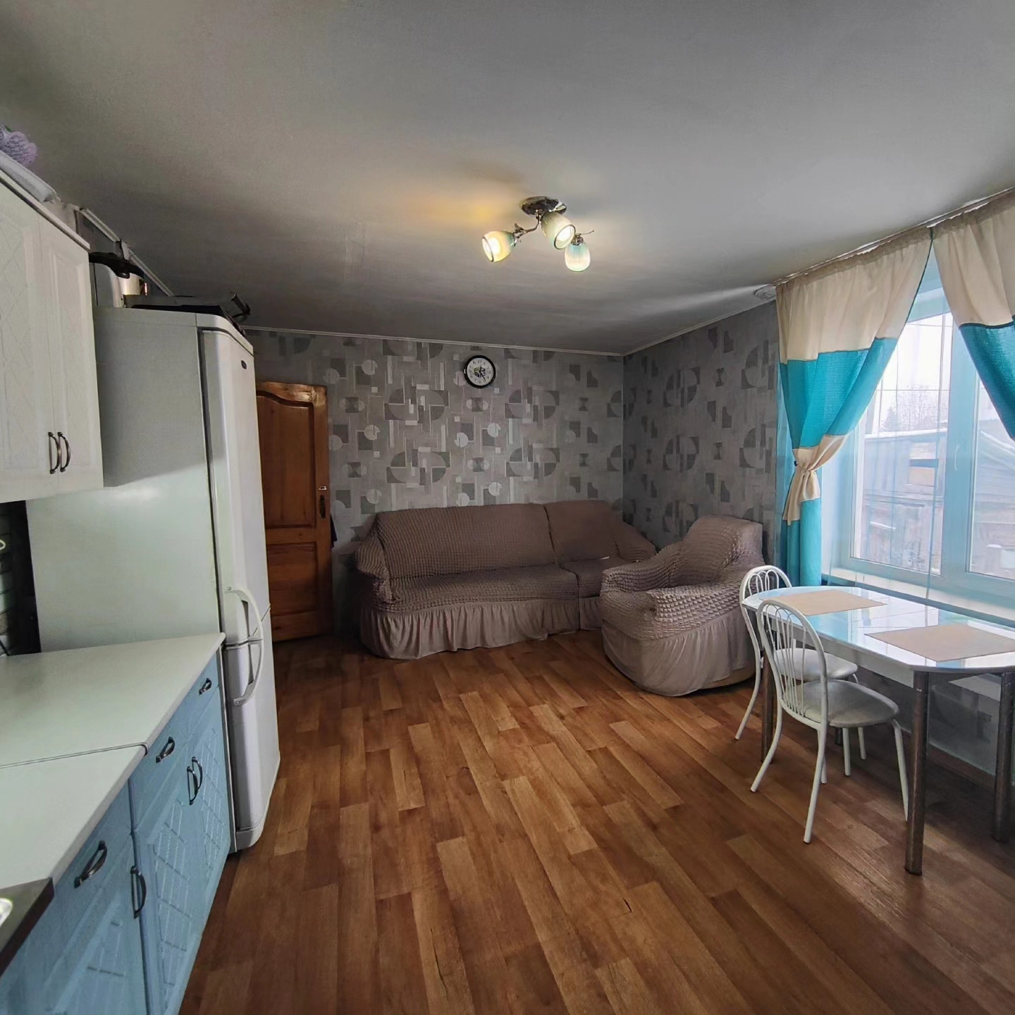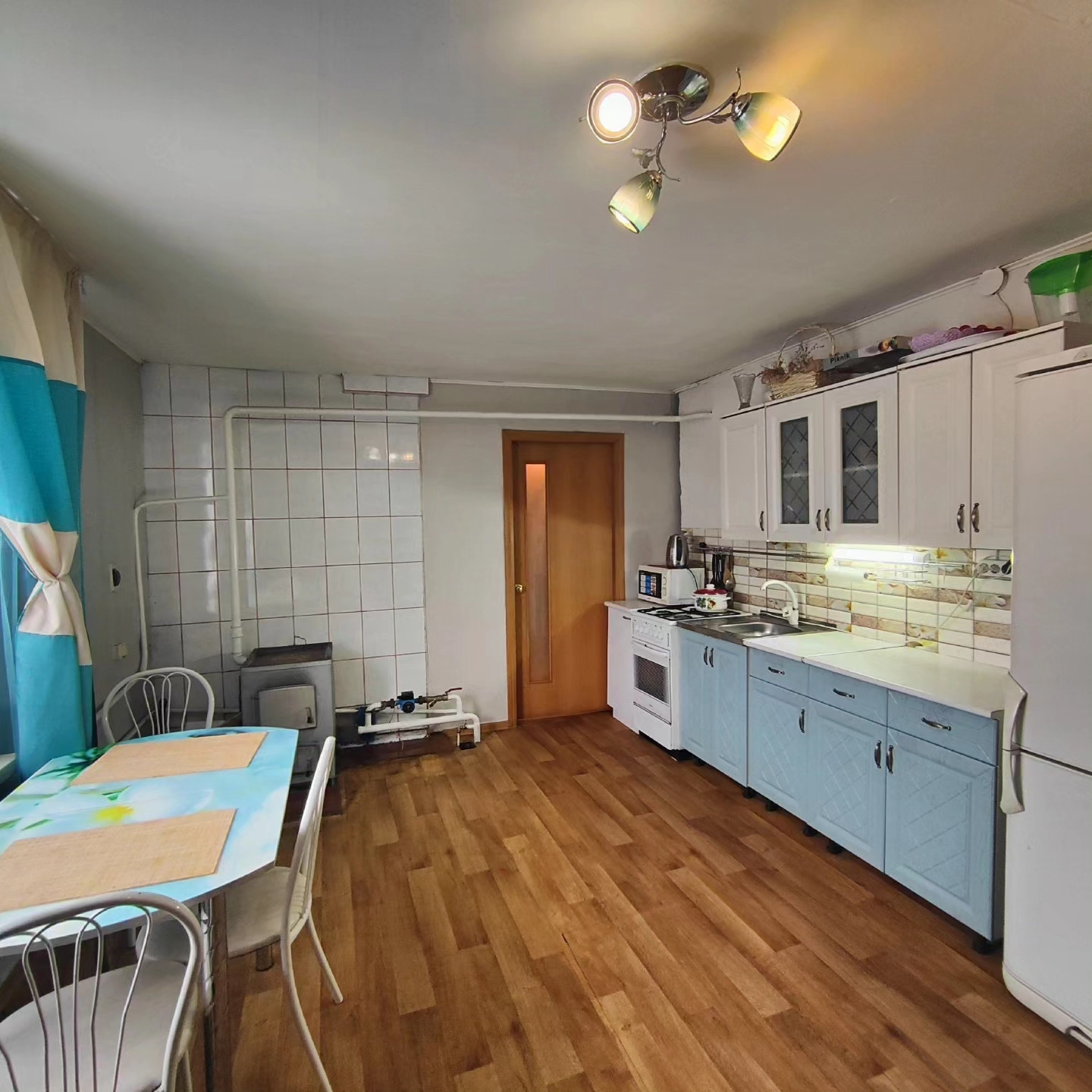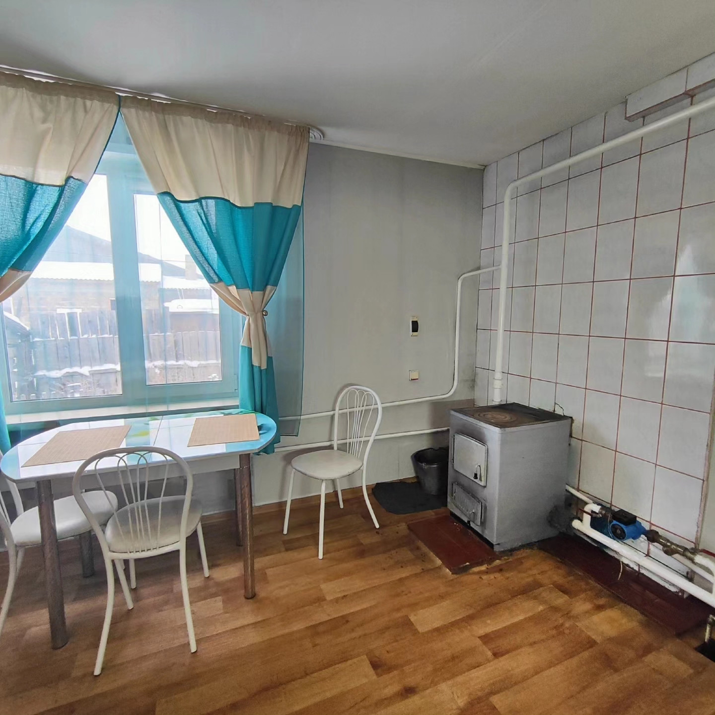 Дом находится на центральной улице Мира. Общая площадь квартиры 58,8 кв.м. Две изолированных комнаты 14 кв.м. и 17 кв.м.позволят Вам иметь личное пространство для каждого члена Вашей Семьи. Вместительная кухня-студия площадью 20 кв.м., где места хватит не только Вам, но и Вашим гостям. Окна в квартире все пластиковые. Отопление - твёрдотопливный котел. Холодная вода из скважины. Санузел совмещенный - установлен бойлер на 90 литров. Септик 3 куба.