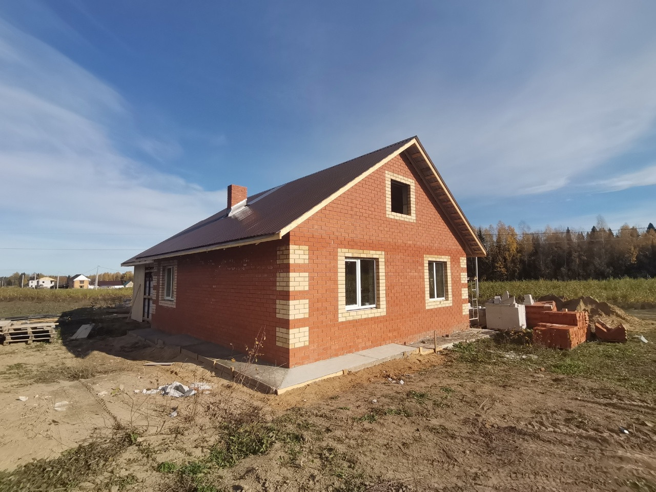 В продаже новый строящийся дом,  д.Чащилова, 7 км. от города, з/у 10 соток, 84 кв.м., кирпич + блок, ж/б пол, скважина, кочегарка, баня, пристрой, отделка под ключ, срок сдачи октябрь-ноябрь 2024 года. Возможность выбрать обои на свой вкус, в 2025 году планируется газификация.