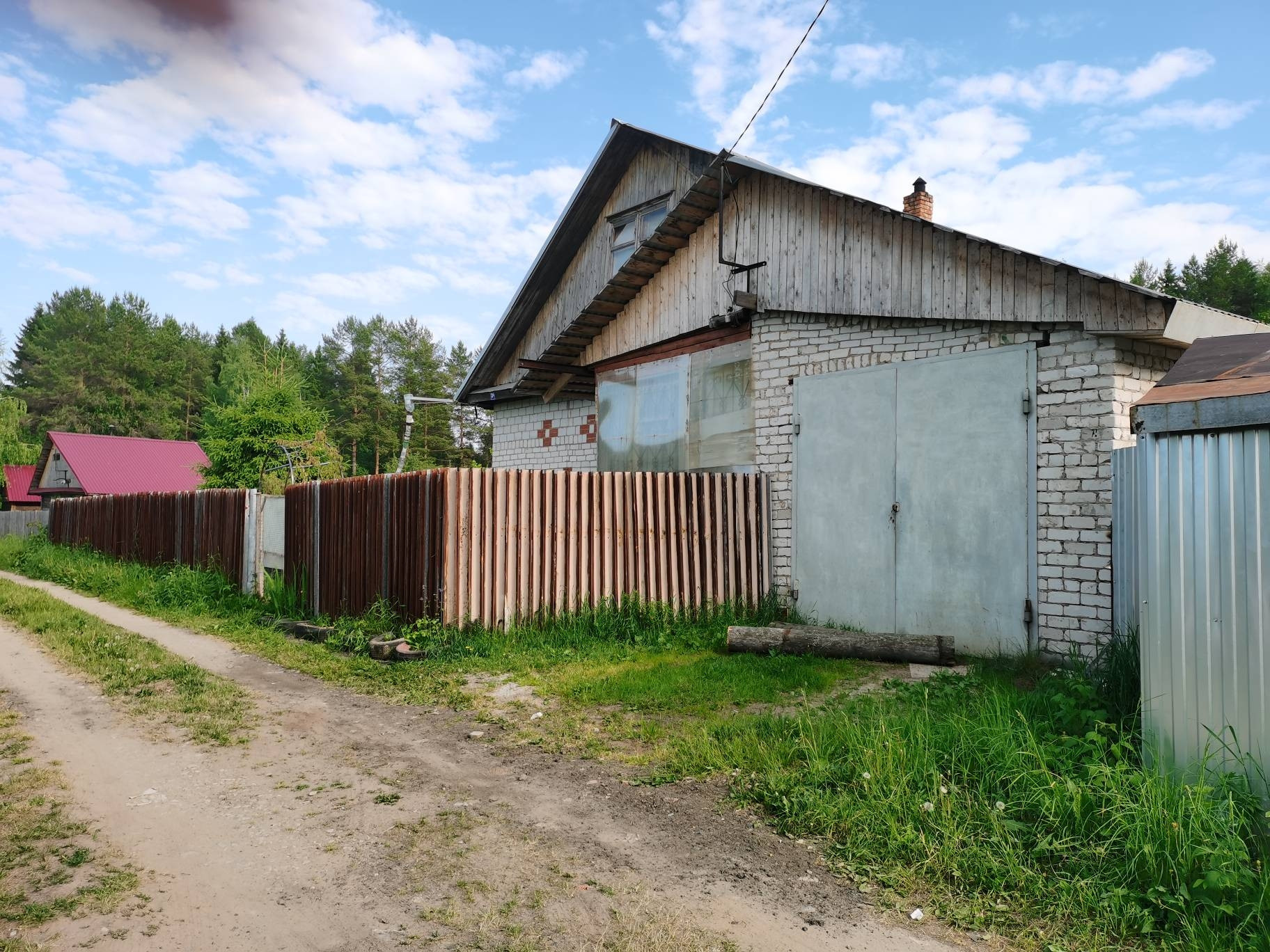 На участке уже есть баня, сарай, гараж и теплицы, также свободное место для других построек. Межевание проведено.
