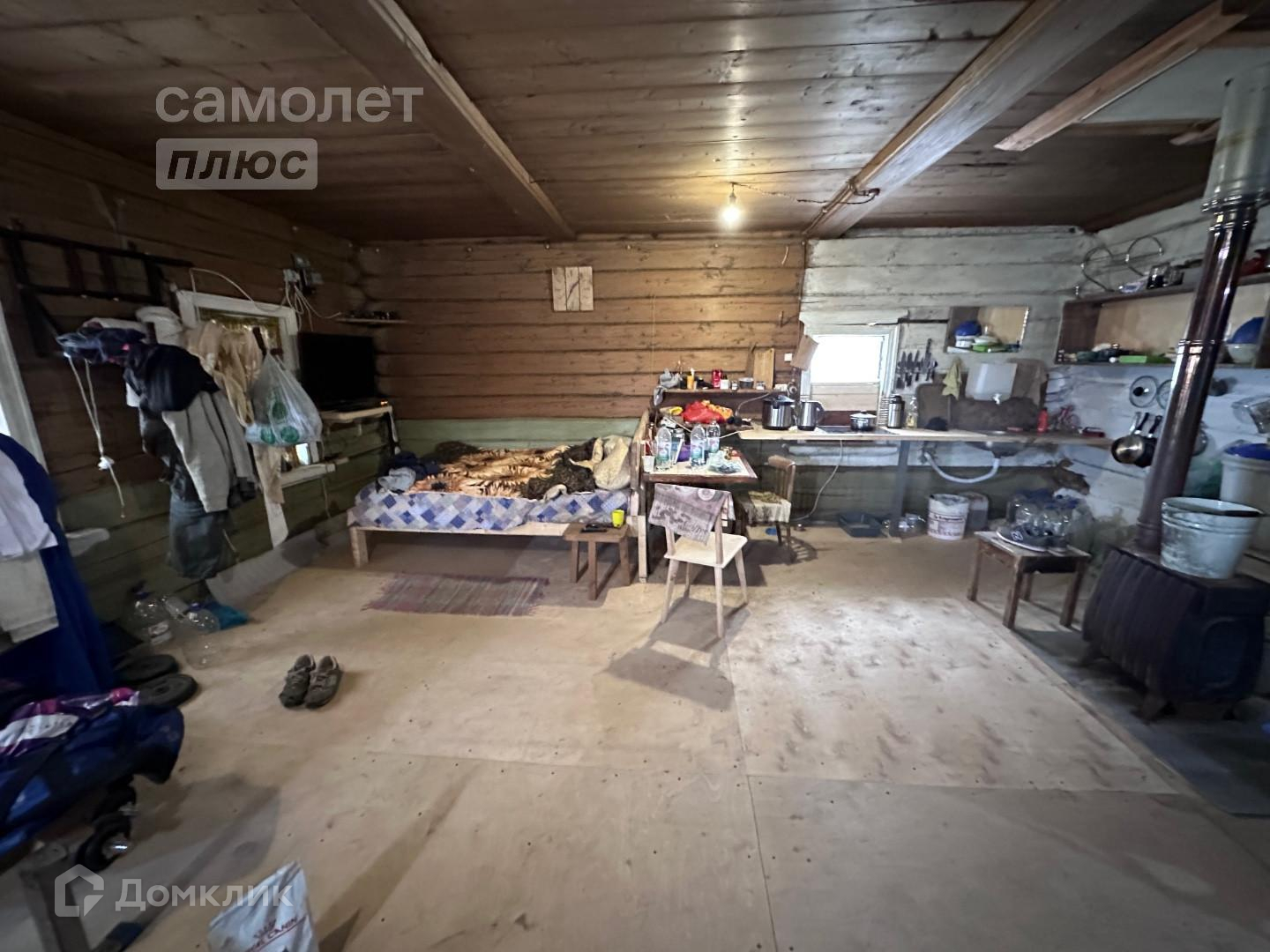 Дом расположен на участке площадью 17 соток и общей площадью 43 квадратных метров. В доме одна большая комната площадью 30 кв.м.,кухня, ванная комната. Имеется гараж, хоз. двор и много места для парковки.