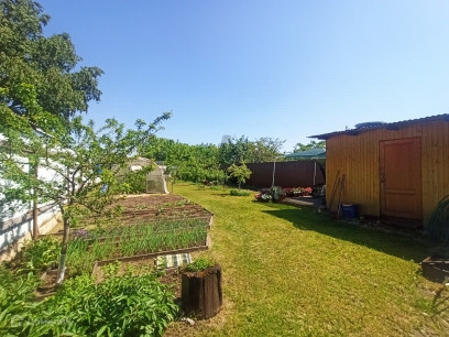 ИЖС. Участок 7,75 кв.м. неправильной формы, но, благодаря этому очень удобен в использовании, огорожен по периметру забором из профлиста, сухой, без уклона, ухоженный, имеются: 2 скважины (одна в доме, вторая в огороде), 2 теплицы и хороший сарай, к которым подведено электричество. На участке - молодой плодоносящий сад – калина, яблони, груши, вишня, черешня, слива, алыча, смородина красная и чёрная, малина, крыжовник. Есть возможность присоединить к участку еще 1 сотку. На участке два выхода на противоположных сторонах.