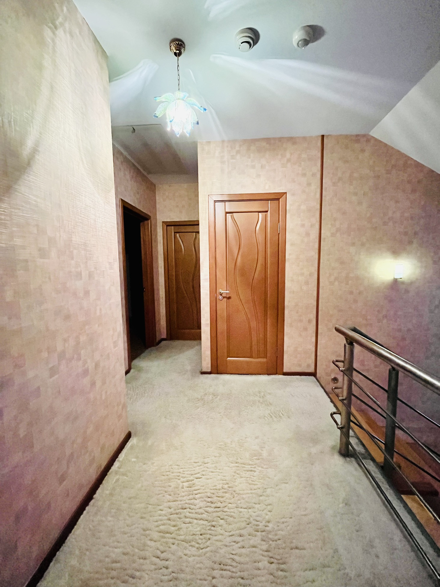 Продается уютный кофортный дом на большом участке с соснами. На первом этаже располагаются просторная светлая гостиная, кухня с выходом на терассу в сад, санузел и центральный вход в дом. Уровнем ниже - входная группа из гаража, котельная, большая гардеробная. На втором этаже спальня с выходом на балкон и кабинет. На третьем этаже - 3 спальни, все с выходами на балкон, санузел. В мансардное пространство можно попасть по откидной лестнице через скрытый люк. В подвале оборудована система хранения, большая мастерская, холодильная комната и серверная. Гараж на 2 машины. Дом готов к проживанию и не требует вложений. В ремонте использованы качественные материалы. Много продуманных мелочей, которые сделают жизнь в доме комфортной, удобной, а главное безопасной: при постановке дома на сигнализацию автоматически перекрывется подача воды и электричества, за исключением котельной, холодильника и кондиционеров. На всех окнах установлены электрические рольставни. Въезд на участок через автоматические ворота. В доме и на участке работает система видеонаблюдения. Установлен центральный пылесос, выполнена разводка для локальной сети, установлен резервный генетатор. На участке высажено более 150 хвойных деревьев: сосны, ели, туи, а также дубы и плодовые деревья, оборудован детский городок, беседка с летней кухней и барбекю, система полива газона, автоматическое освещение участка. Участок ровный, сухой. Рядом с домом есть хозблок и возможность для парковки еще одного автомобиля под навесом. Фундамент дома - ленточный монолит. Скважина более 100м., септик, магистральный газ, электроэнергия - деревенский тариф, без ограничения по мощности. Подъезд к участку асфальтированный. Сигнализация Гольфстрим с выездом ГБР. Рядом сетевые магазины, школа, детский сад, ТЦ. За счет обилия деревьев на участке тишина, свежий воздух и уединенность. Прекрасный вариант для ценителей комфортной загородной жизни недалеко от города.