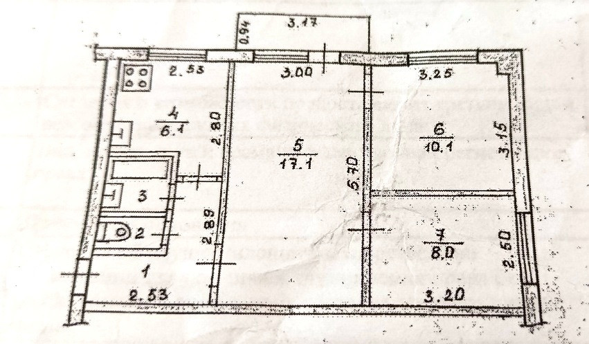 Общая площадь - 49 кв.м, жилая площадь - 35,2 кв.м ( комнаты: 17,1+10,1+8 ).
