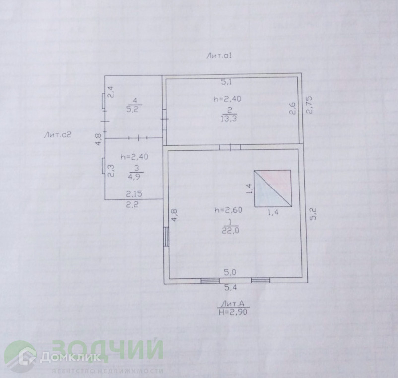 Общая площадь 22 м2