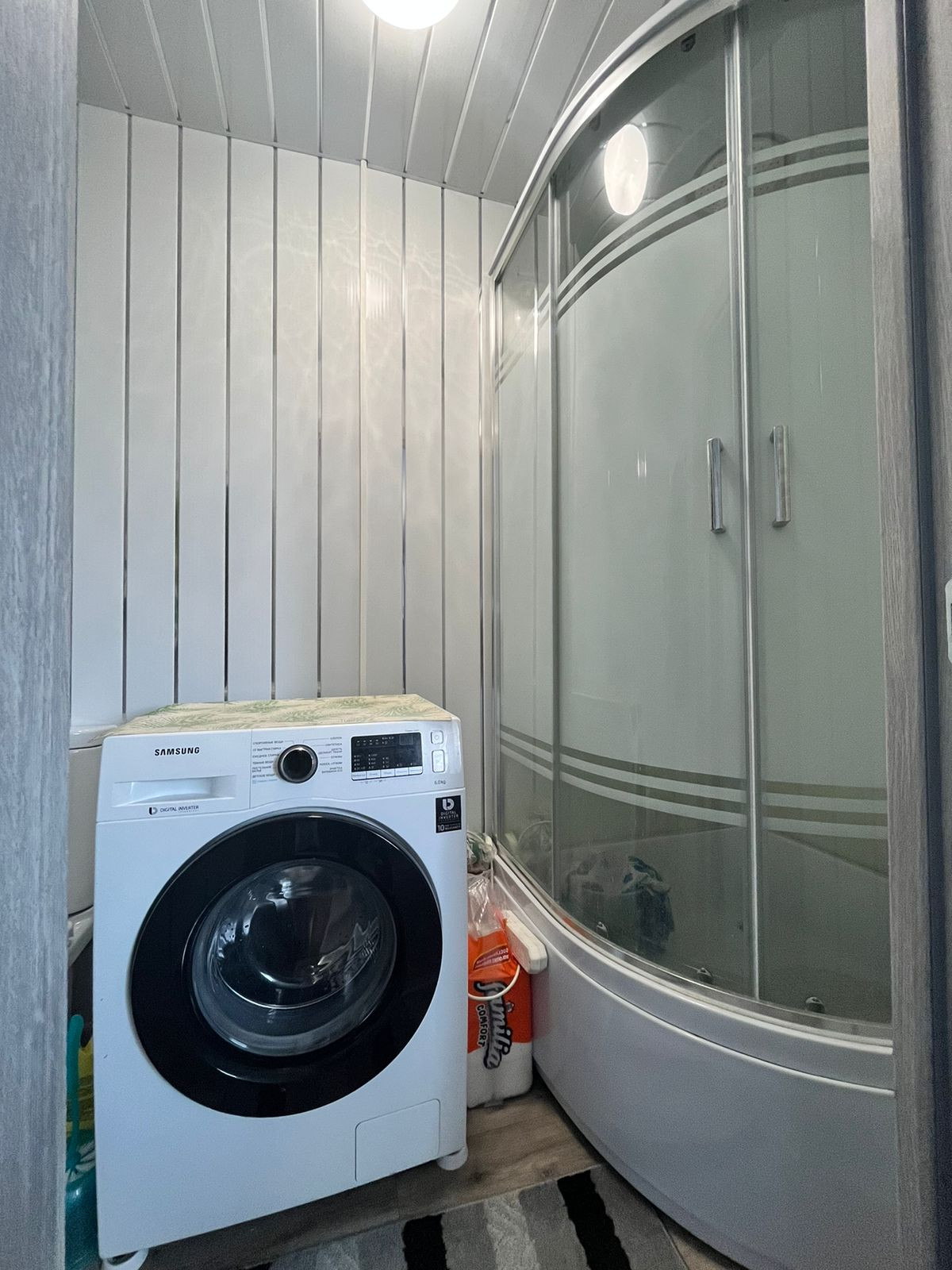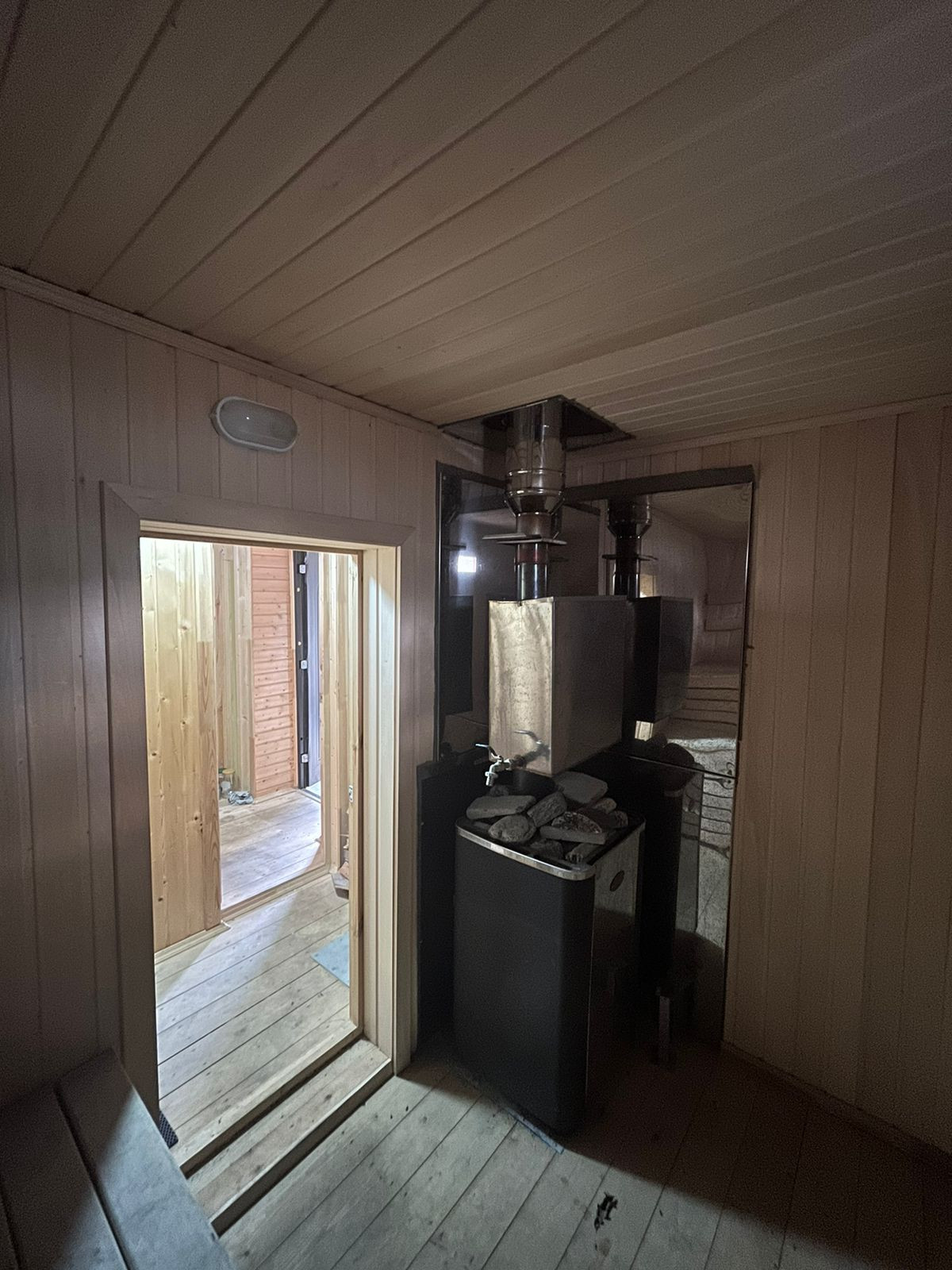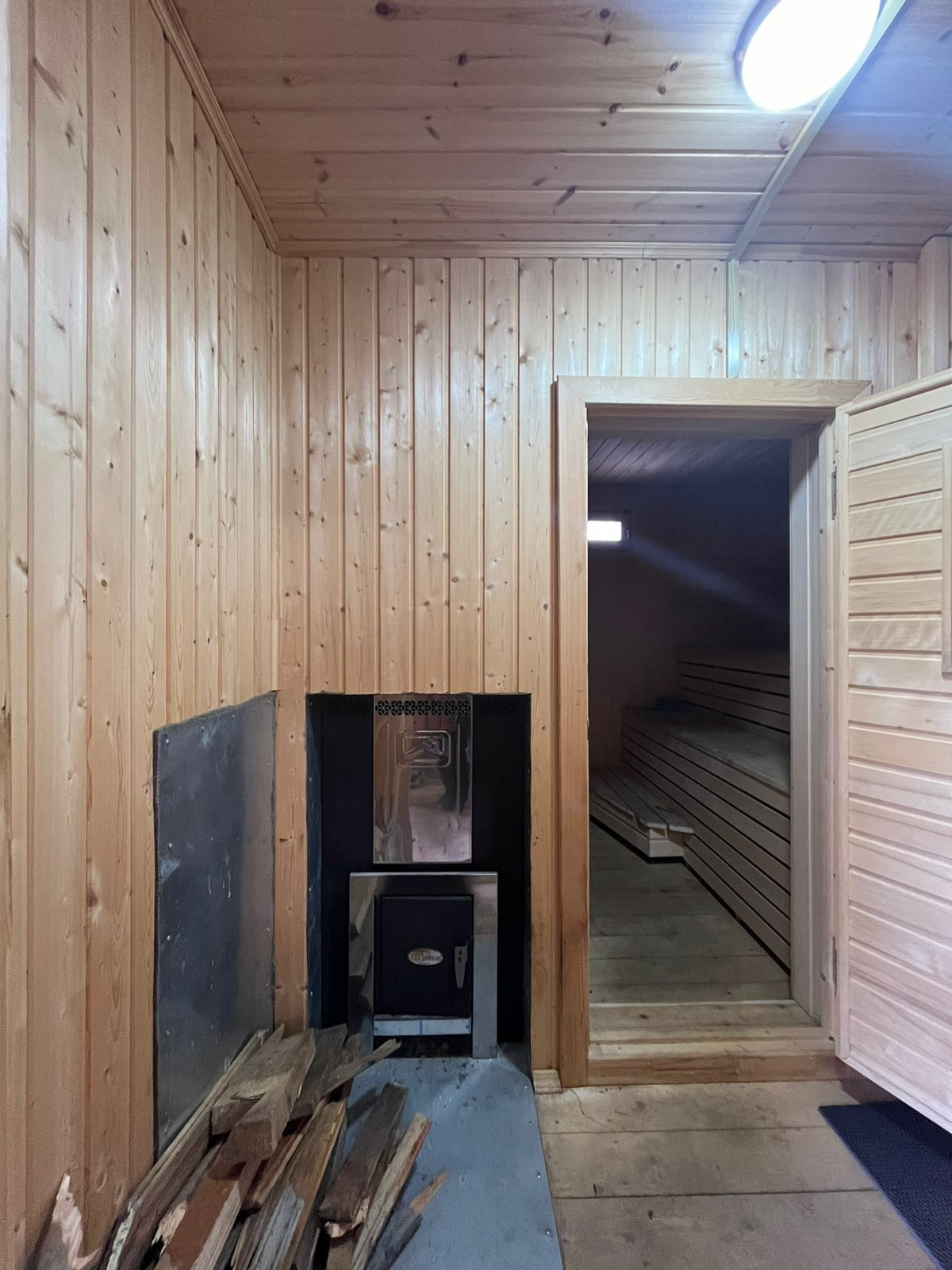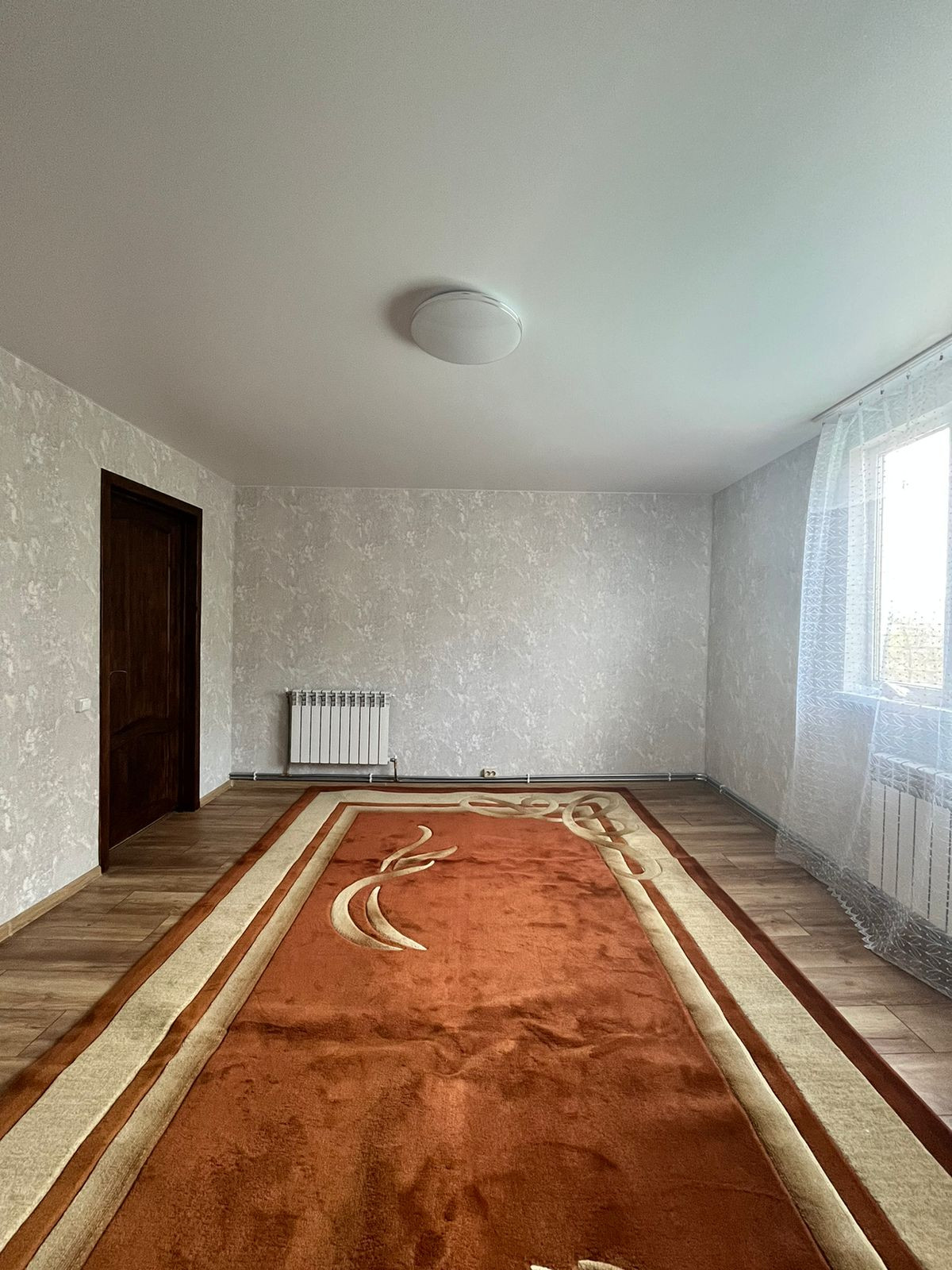 Пол – ламинат, с подогревом по всему первому этажу. В гостиной пространство разделено на зоны (спальную и гостевую) декоративными деревянными перегородками ручной работы. На втором этаже две большие светлые спальни с прекрасными видами из окон. Отделка стен – обои. Во всем доме – натяжные потолки.