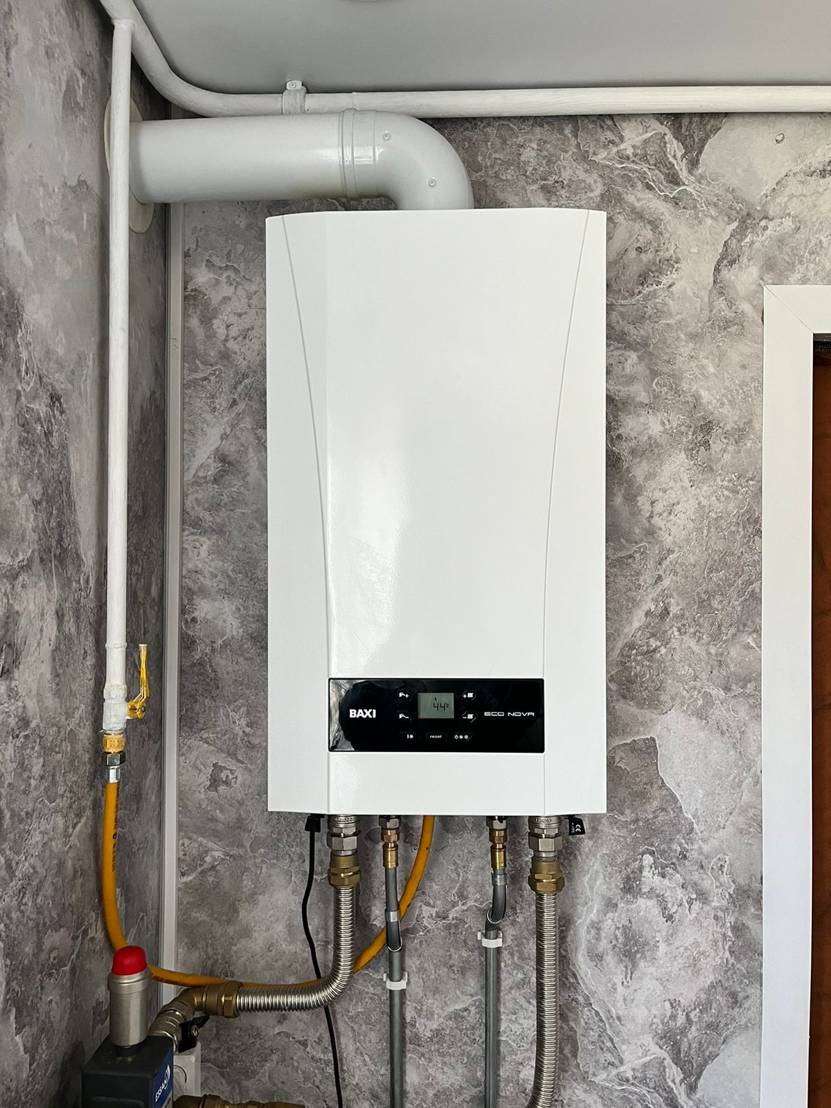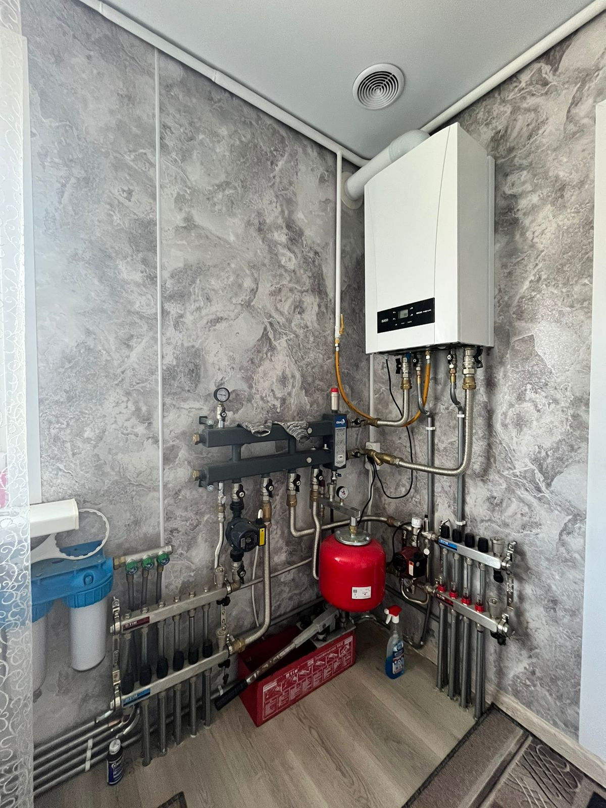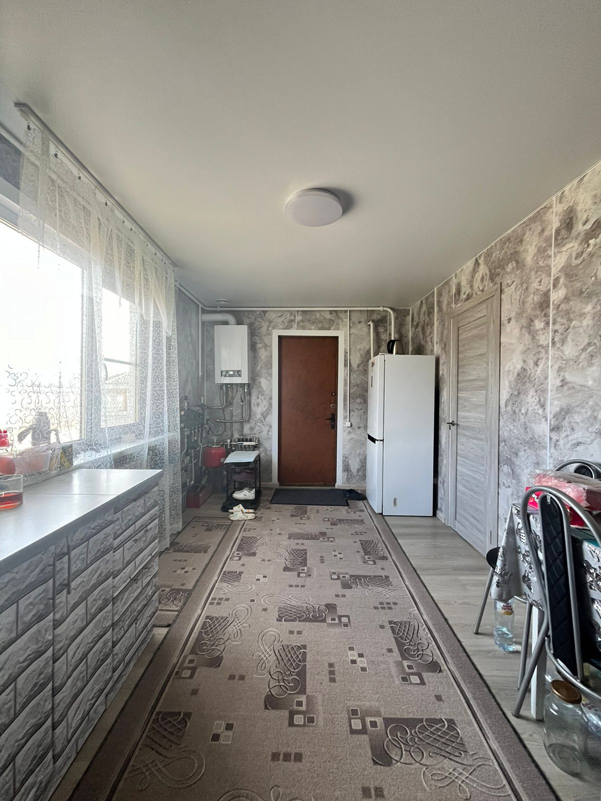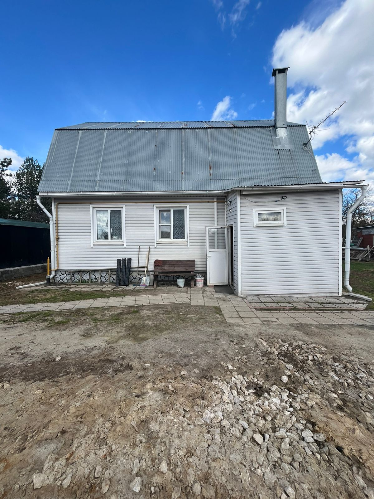 Коммуникации: электричество 15 кВт, установлен счетчик. Газ заведён в дом (газовый котёл). Центральный водопровод. Септик (кольца). Есть летняя вода.