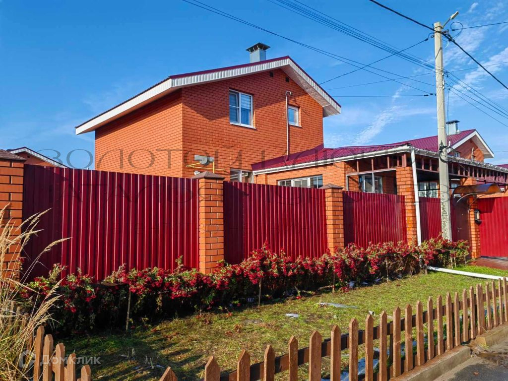Участок обнесен забором из металлического профиля, на фасадной части находятся распашные ворота и отдельная калитка с козырьком.
