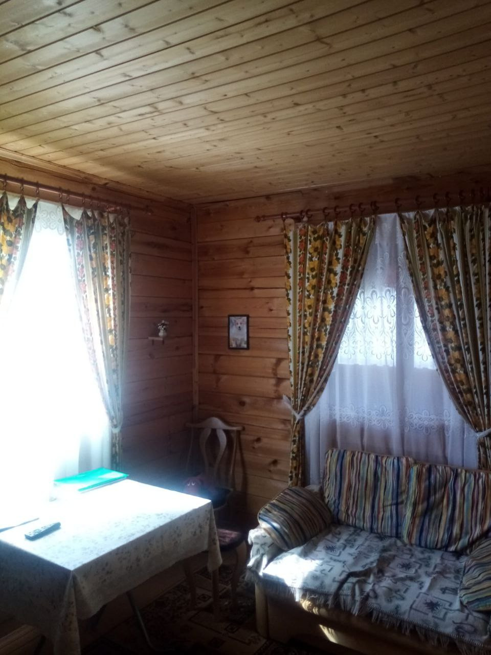 Две комнаты на первой этаже,  + кухня-веранда, третья комната на втором. Внутри отделка вагонка.