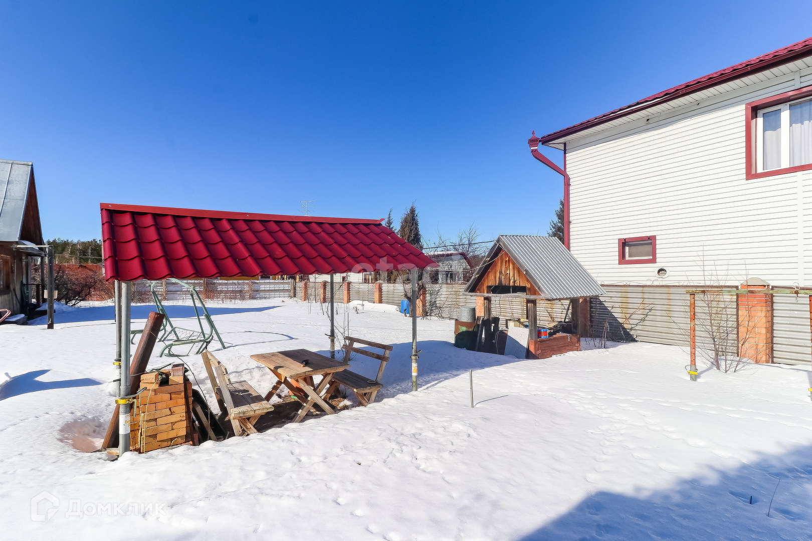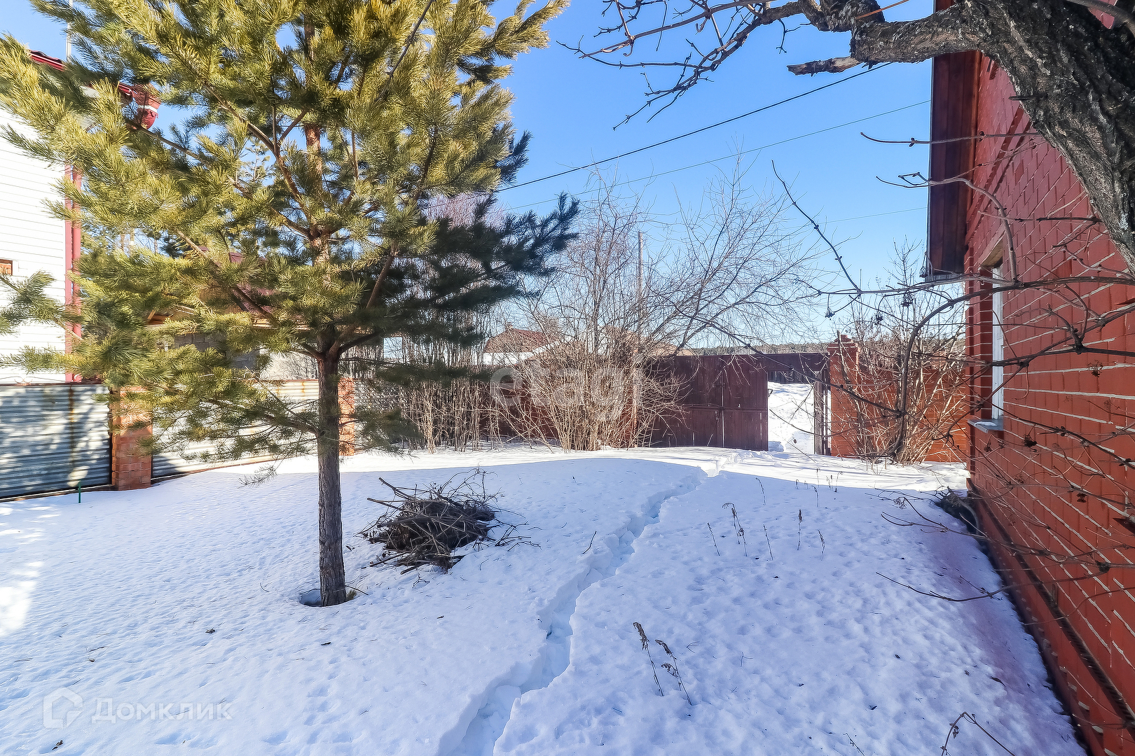 На участке построена баня, колодец. Участок обнесён забором из кирпича.