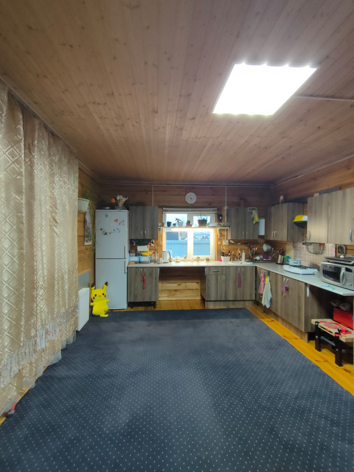 На участке стоит большой хозблок для хозяйственных нужд, в котором оборудован птичник с перепелами. Свет 15 кВт. Скважина 38 метров (вода хорошая, делали экспертизу), септик Топас-4. Вода и канализация заведены в дом.
