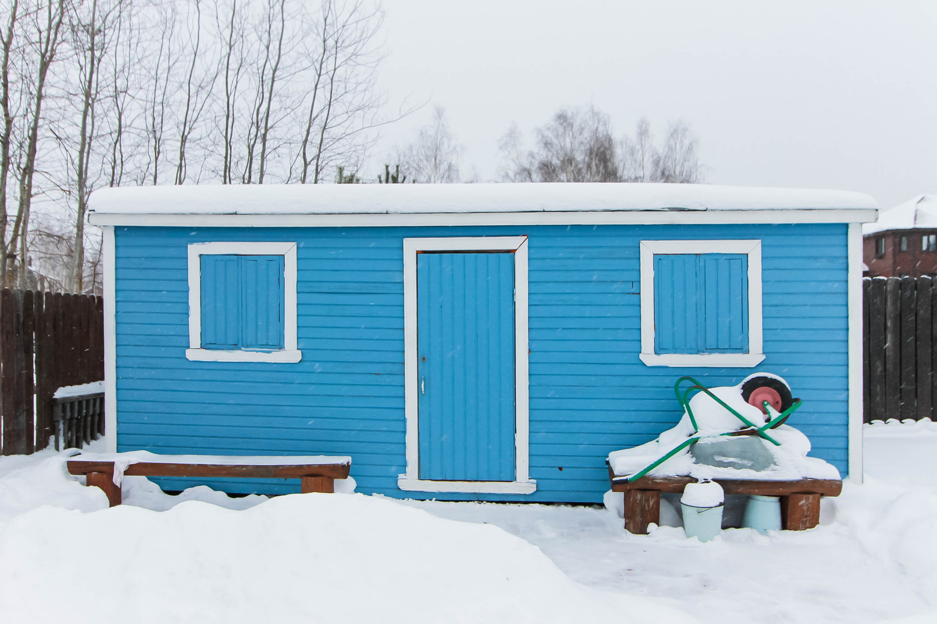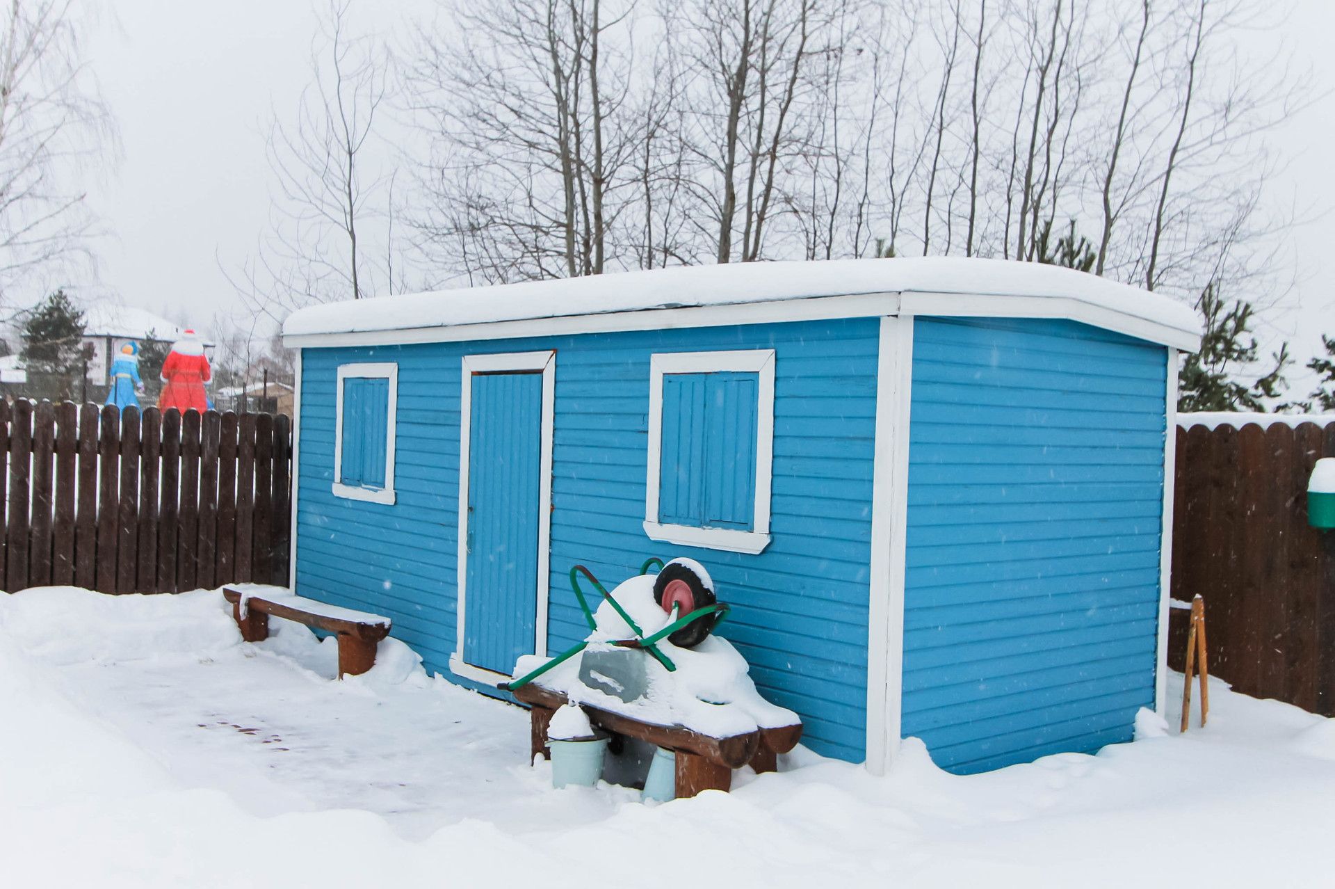 На участке установлен хозблок 6х2,3 м2 на винтовых сваях, оббит вагонкой с внешней и внутренней сторон. Крыша – оцинкованный металл, освещение – 3 лампы дневного света.