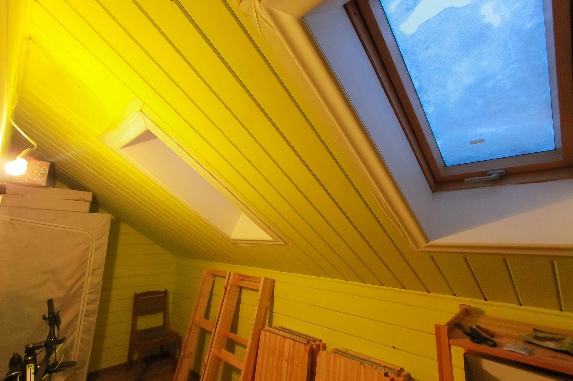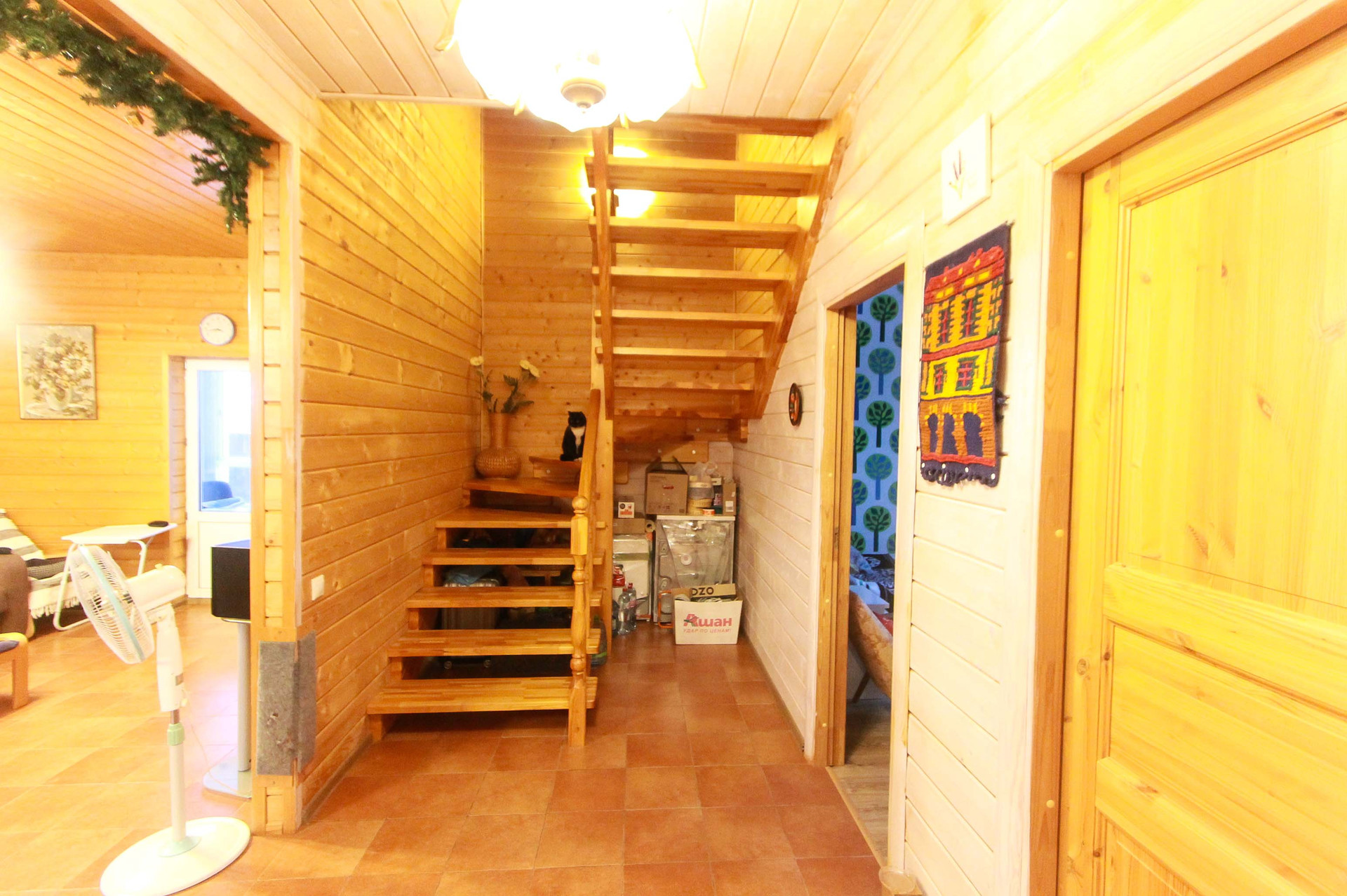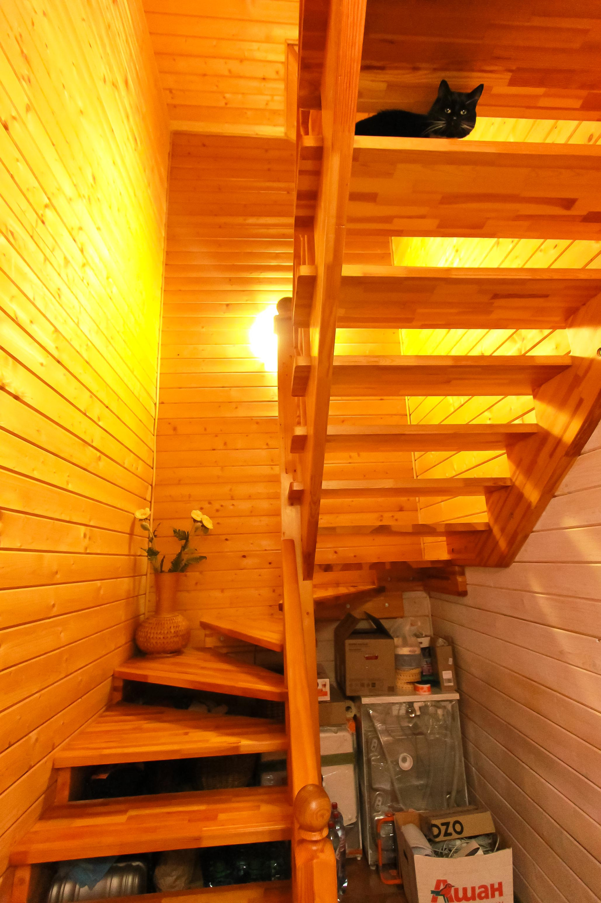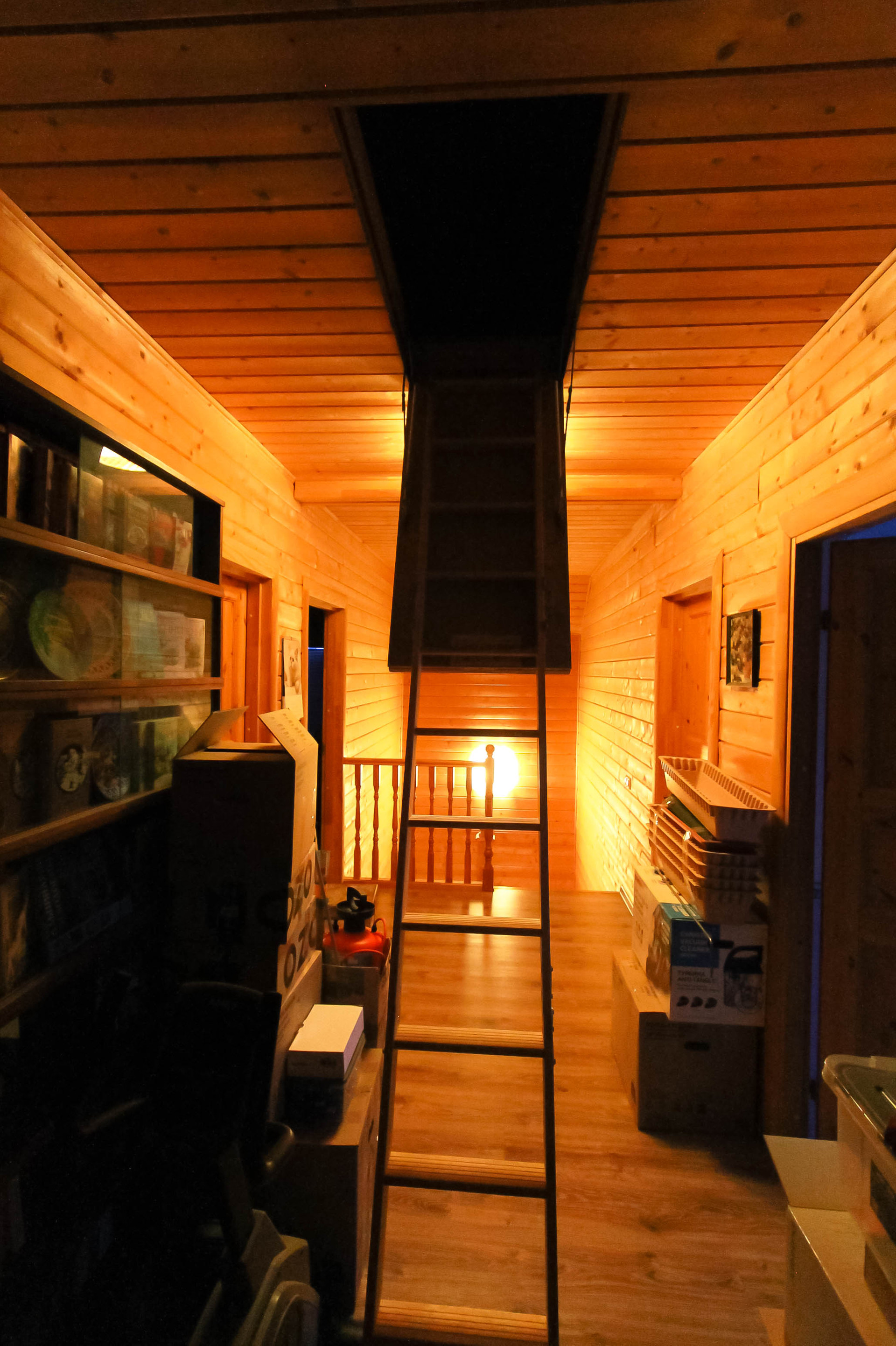 Выдвижная лестница на 3-й этаж, на 3-м этаже есть освещение и пол с гипоаллергенным утеплителем.