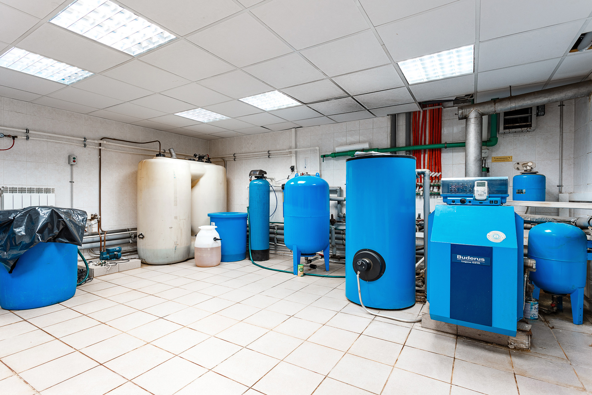 Оборудование: отопление - дизельная станция 50квт, емкость для дизеля 7м3, если отключают электричество-автоматически включается дизельный генератор; электричество - 50квт, так же установлена электрическая система Фэнкойл - работает на обогрев/охлождение дома; водоснабжение - скважина 120м; канализация - финский септик Упанор.; так же по дому проведена телефонная линия для сообщения между этажами.