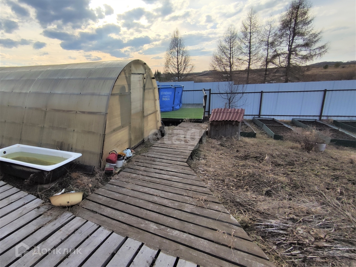 Очень просторный ухоженный участок. Площадка - возле дома вымощена плиткой, Две Отдельные зоны для посадок, две теплицы, бассейн, летний душ. Много плодовых деревьев.