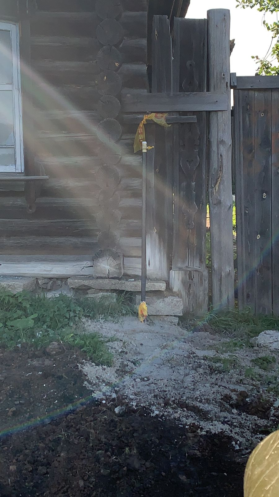 Дом в деревне, река рядом, лес. Соседи живут постоянно. Огромный участок. Колодец , много вишни, яблони.