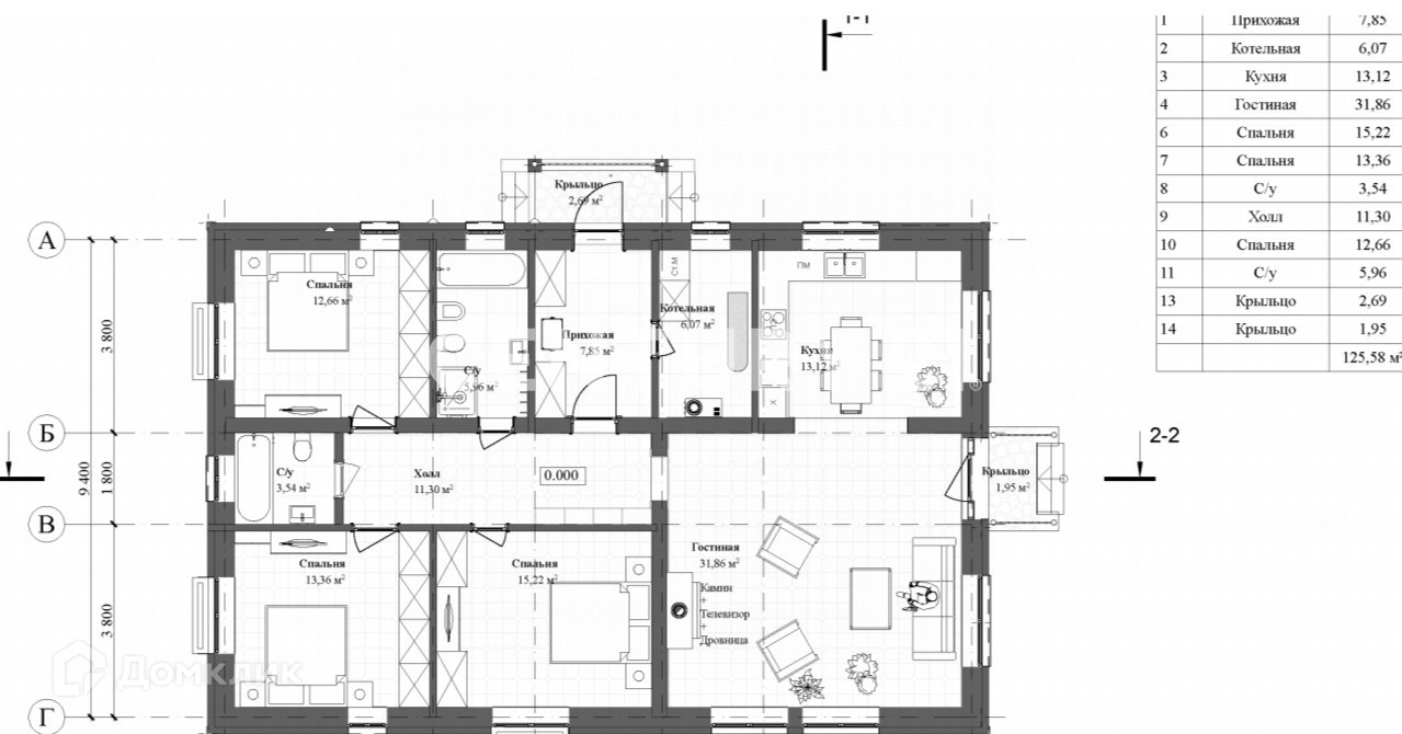 Общая площадь 125 м2