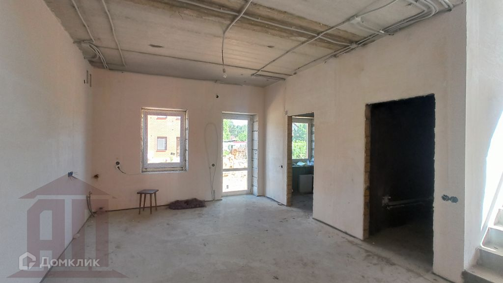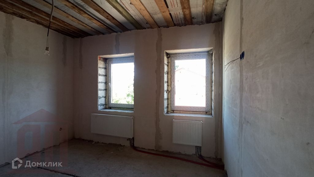 Выполнена штукатурка стен, стяжка. Теплые полы. Разводка электричества по дому. Установлены тройные стеклопакеты.