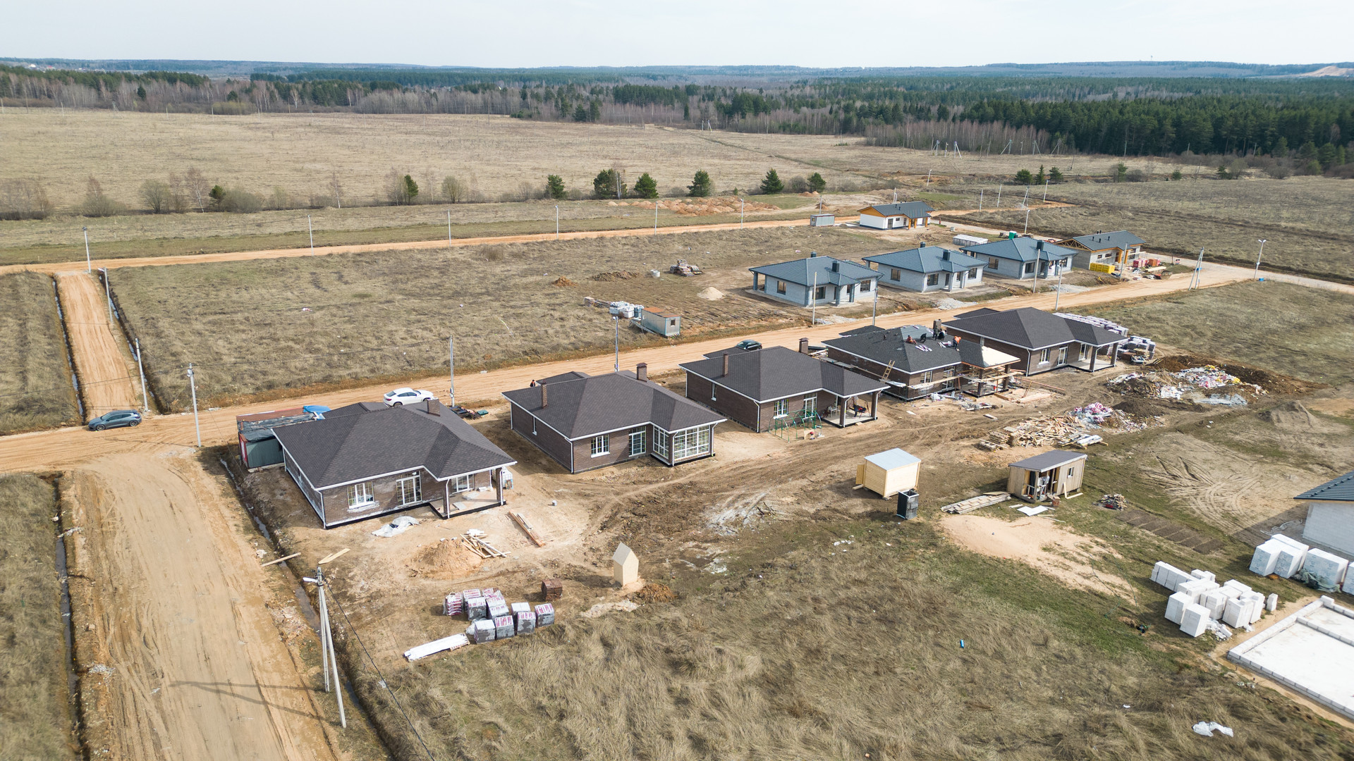Коттедж сдается с закрытым тепловым контуром (окна, двери, утепление по потолку) – без отделки.