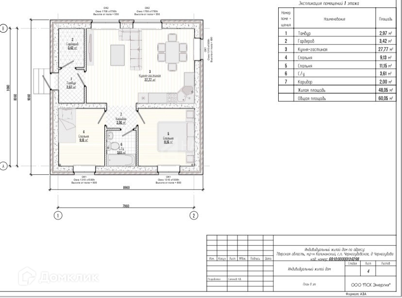 Общая площадь 60.06 м2