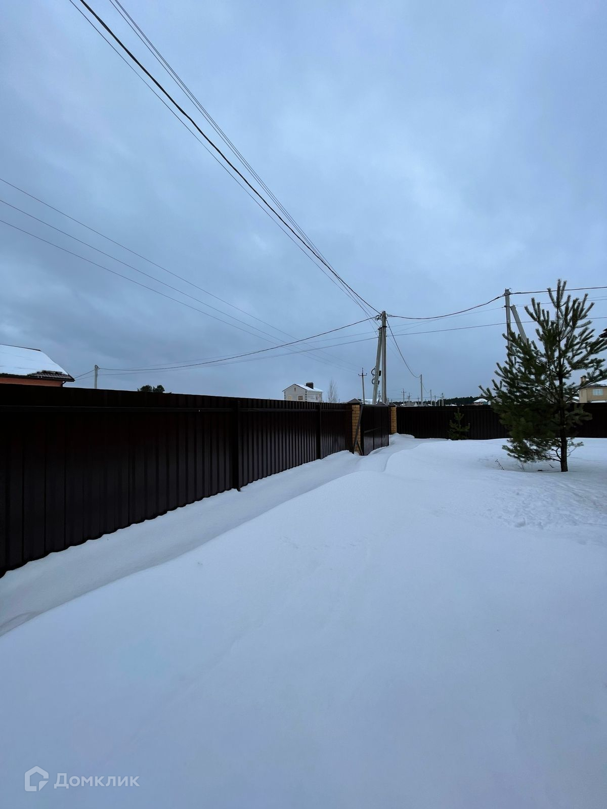 Участок по периметру огорожен забором с выдвижными воротами.