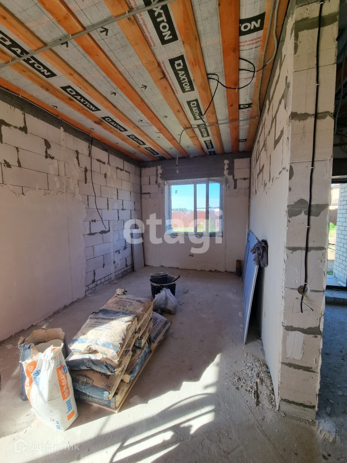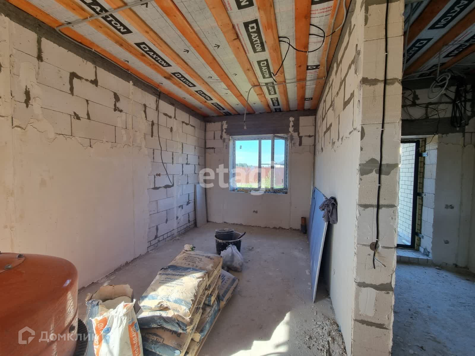 В доме 139 м2 изолированные 3 просторные комнаты, большая кухня-гостиная. Два сан узла, котельная и гардеробная. Стеклопакеты фирмы рехау. Стены в данное время штукатурят, на фото видно, металлическая входная дверь.