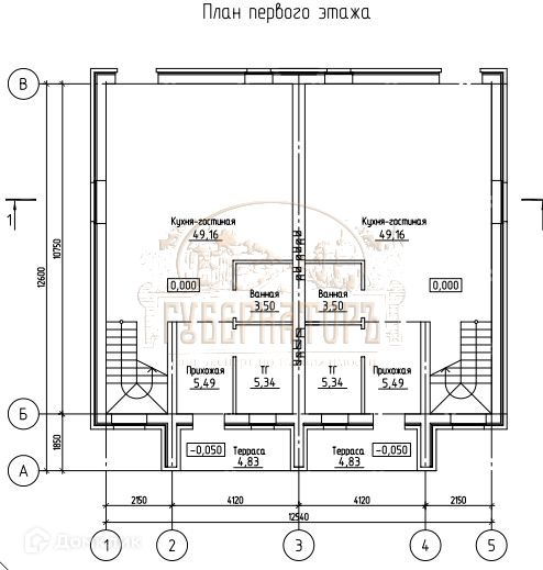 Первый этаж: прихожая, с/узел, бойлерная, гостиная-кухня 49кв.м. свободной планировки. По всему этажу теплые полы.