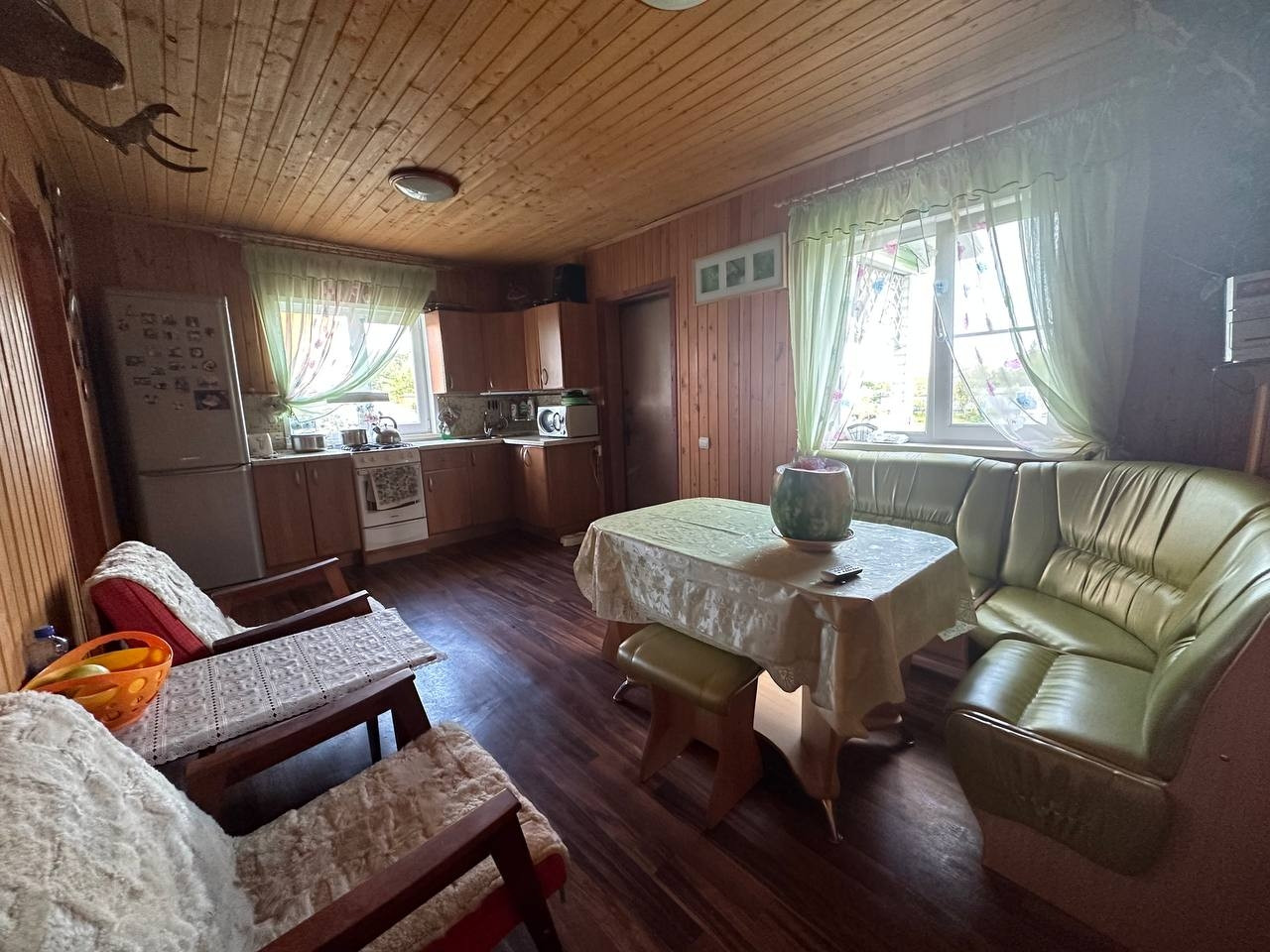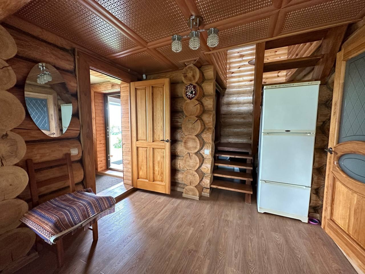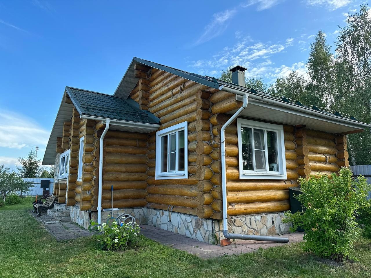 Основные характеристики дома-бани: Ручная рубка диаметр бревна 34см; этажность-2этажа; кухня-столовая (17м.кв.); комната (30 м. кв.); парная( сауна); ванная комната, с/у; терраса с зоной барбекю; тех. помещение.