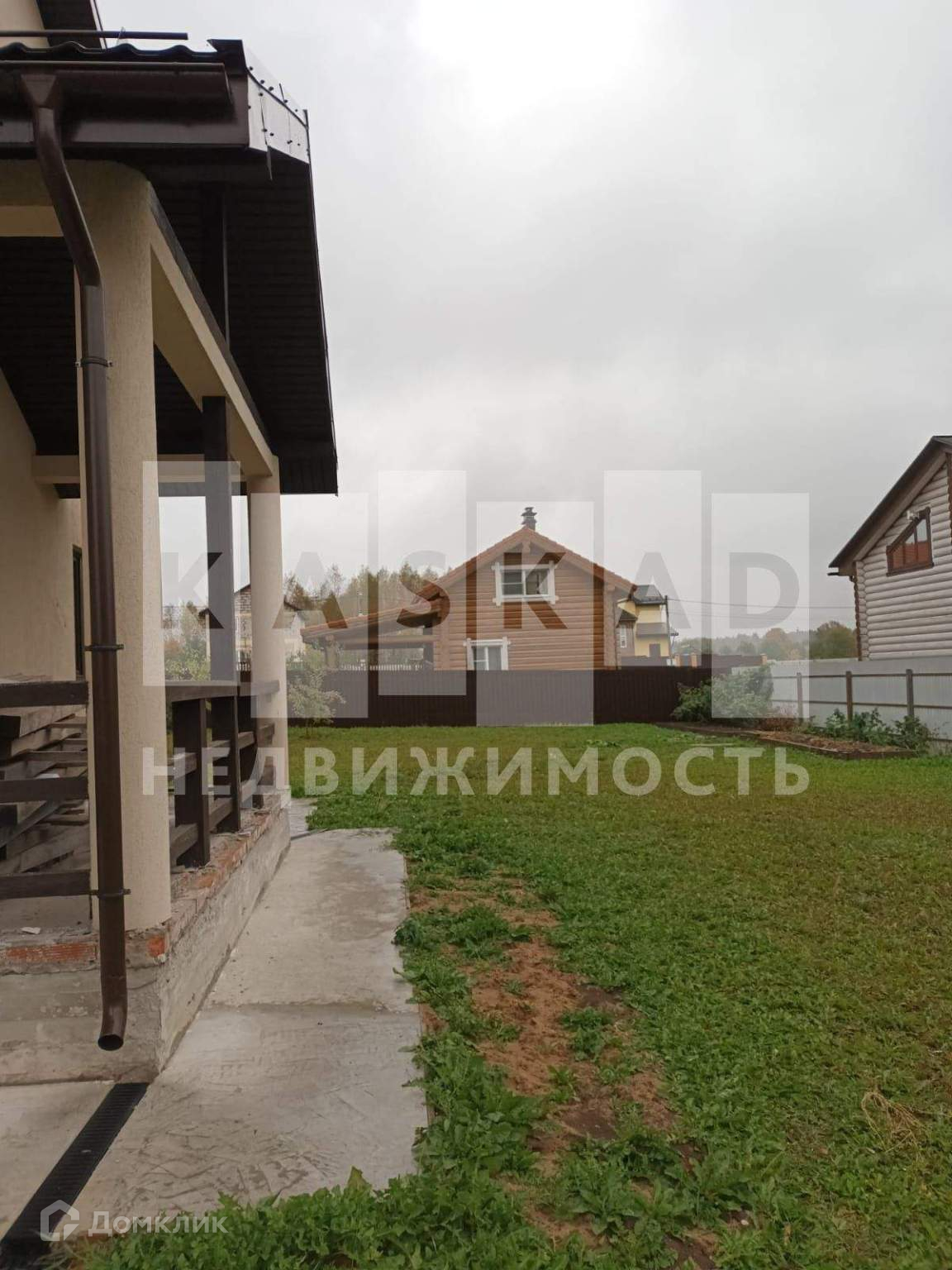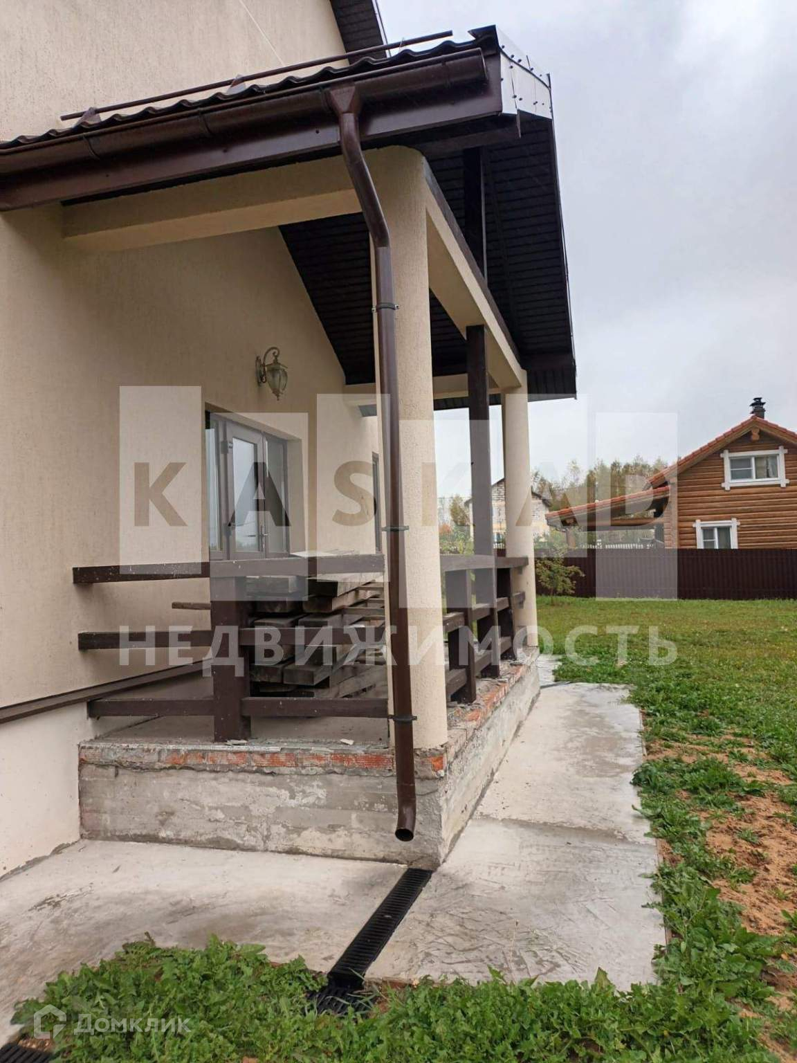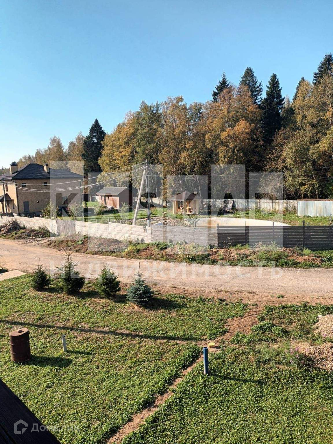 На участке вокруг дома сделан дренаж, пострижен газон. За домом есть фруктовый сад с карликовыми яблонями.