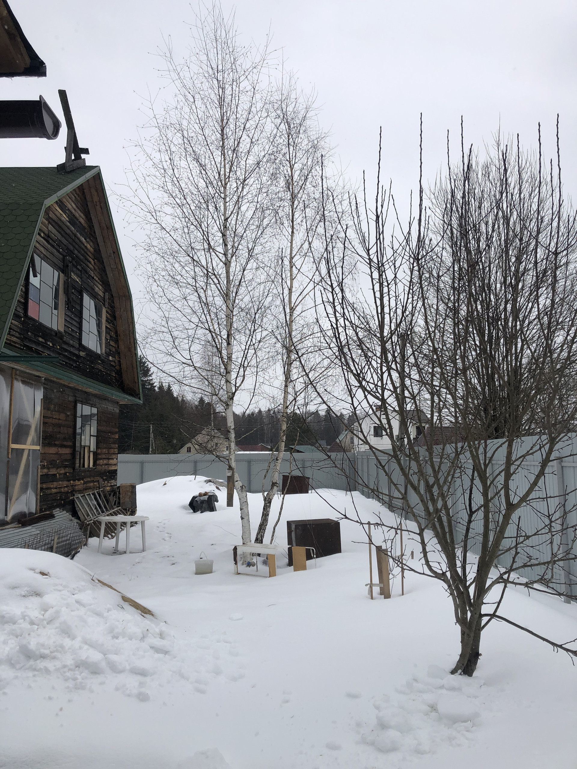 - на участке 3 яблони, 2 березы